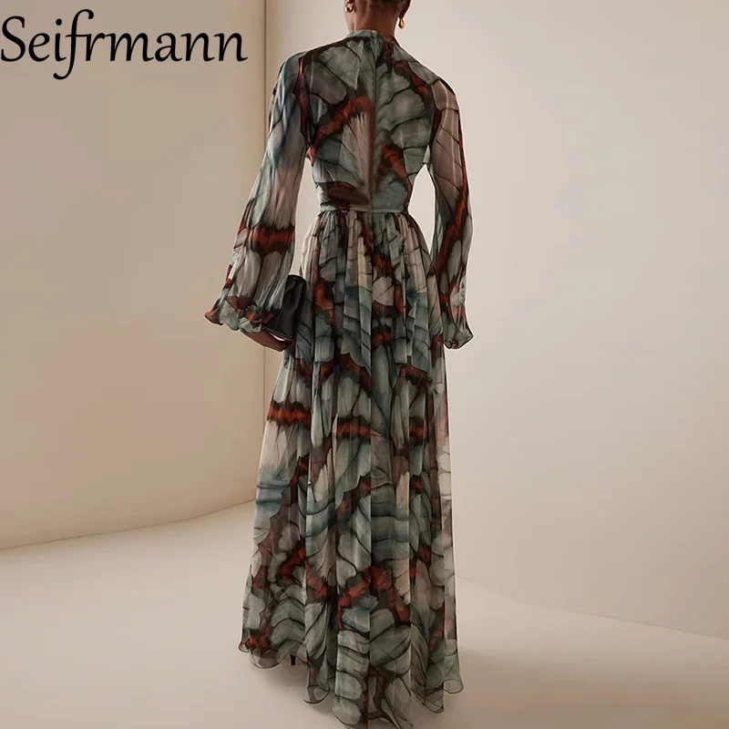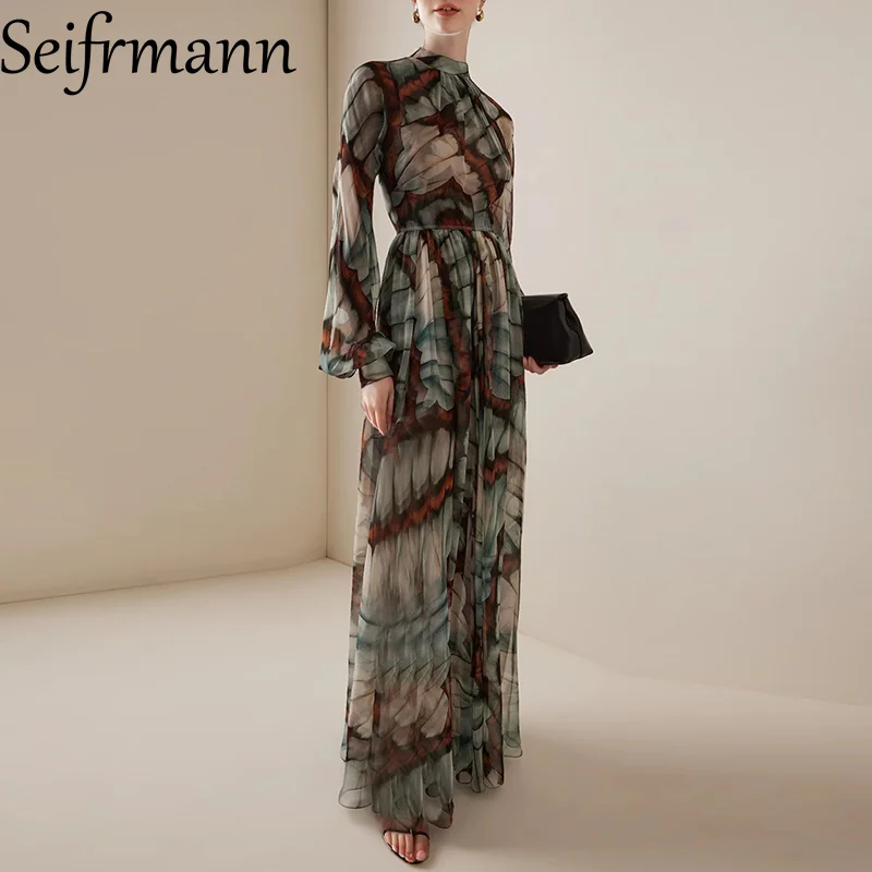 Seifrmannالأزهارطباعةفانوسالأكمامفساتينراقيةللنساءالوقوفطوقفستانطويلفضفاضكبيرسوينغالملابسربيع2025جديد-AliExpress200000345