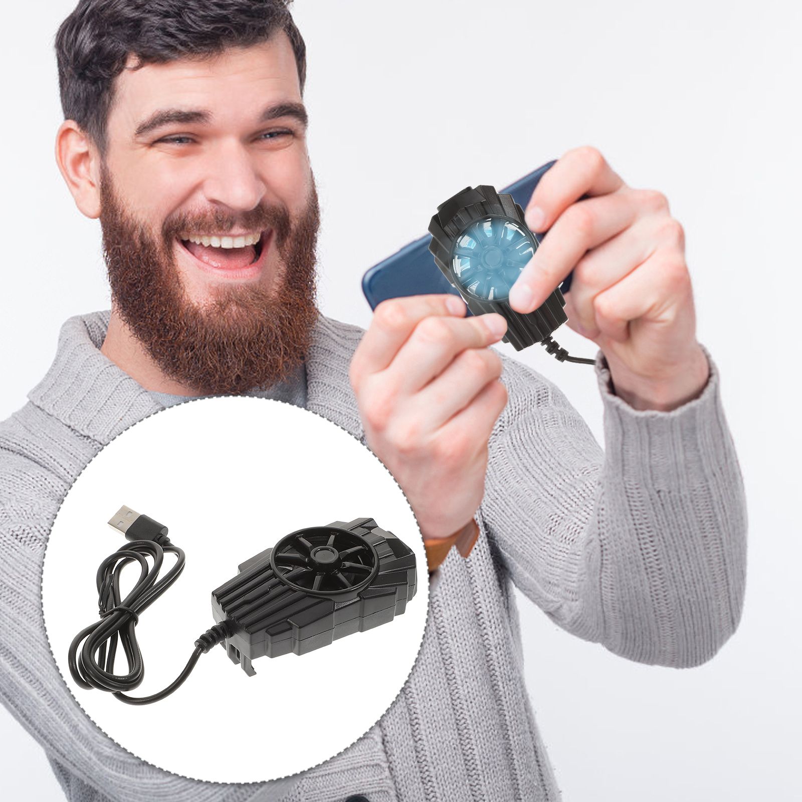 Компактныйчерныйтелефонныйкулеризпкскреплениемдляохлаждениясмартфона