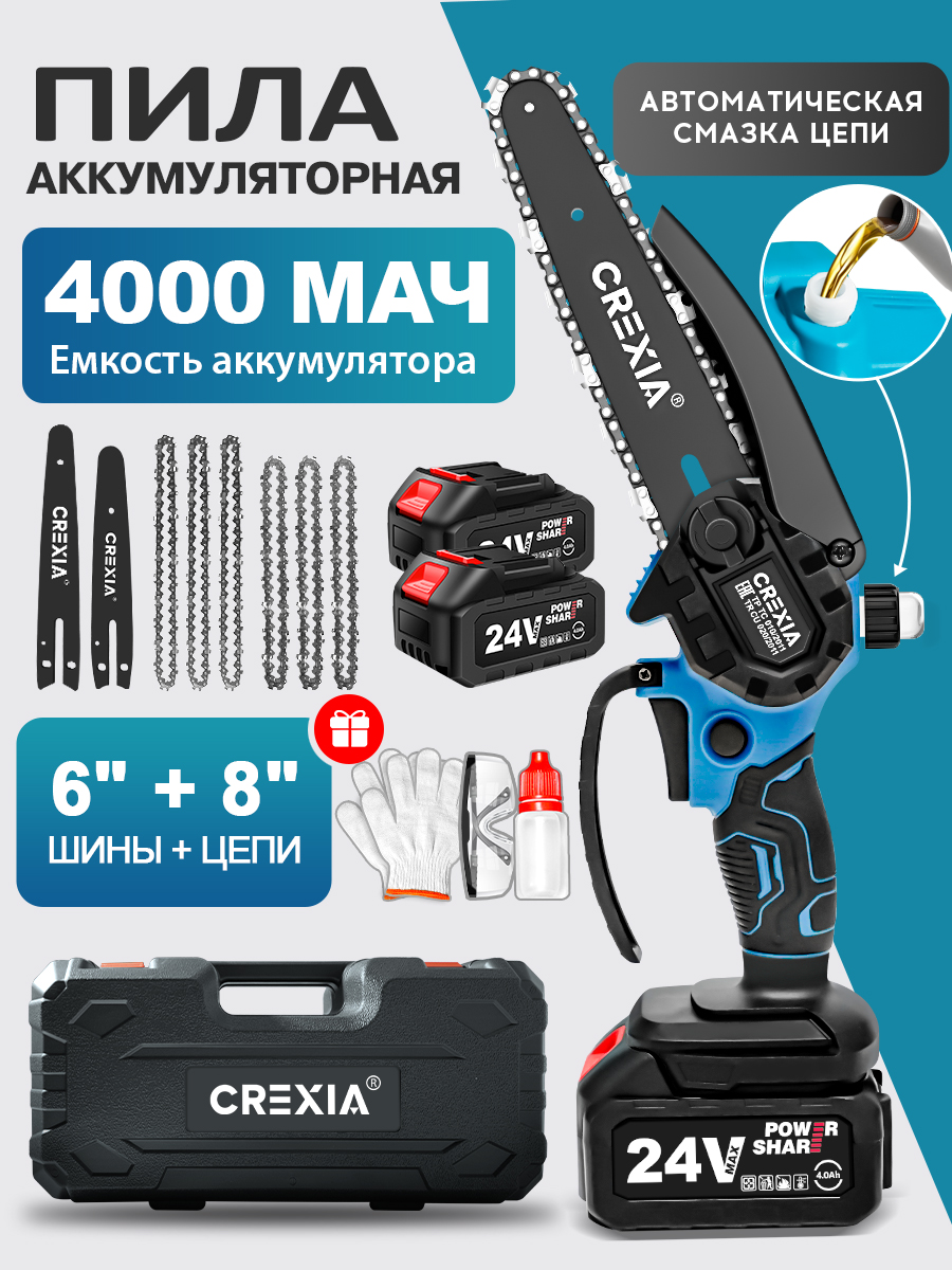 Электропила CREXIA, аккумуляторная, подсветка, антивибрационная система, 1000 Вт, 2 АКБ — купить в интернет-магазине Pie in the sky на Яндекс Маркете