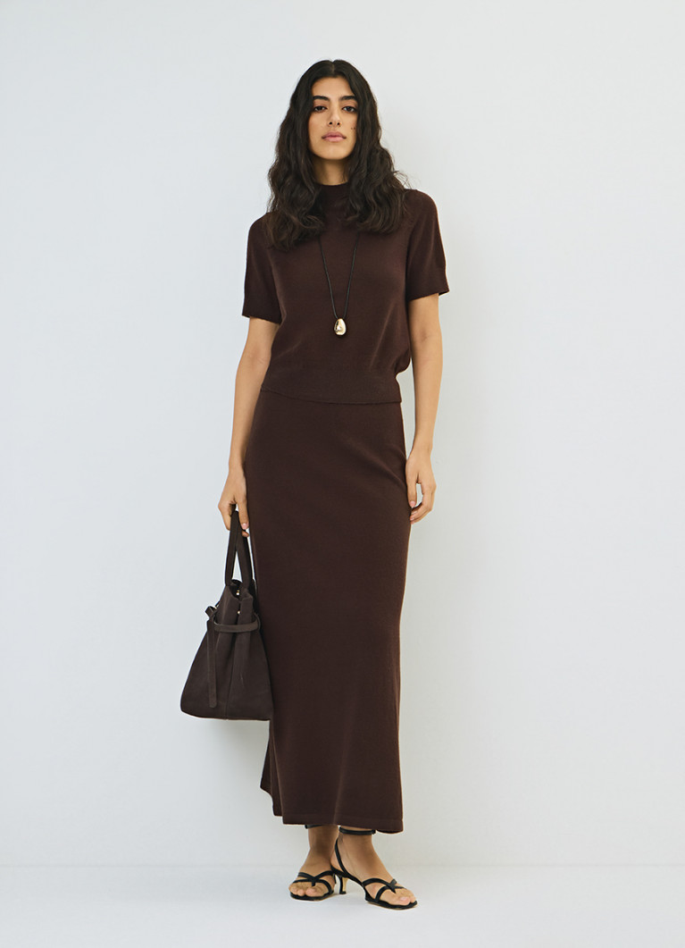 Вязаная юбка-трапеция OWNK01037AO02-T8, цвет: темно-коричневый – купить в интернет-магазине O'STIN. ✔️ Большой выбор размеров. ⭐ Акции, скидки и бонусная программа. Заказывайте и оплачивайте онлайн на сайте. ☎️ 8 800 777-4-999.