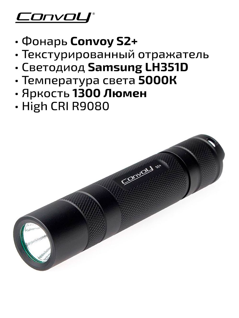 Фонарь Convoy S2+ (1300лм текстур. рефлектор, 4 режима, LH351D 5000K CRI>90) – покупайте на OZON по выгодным ценам! Быстрая и бесплатная доставка, большой ассортимент, бонусы, рассрочка и кэшбэк. Распродажи, скидки и акции. Реальные отзывы покупателей. (713420587)