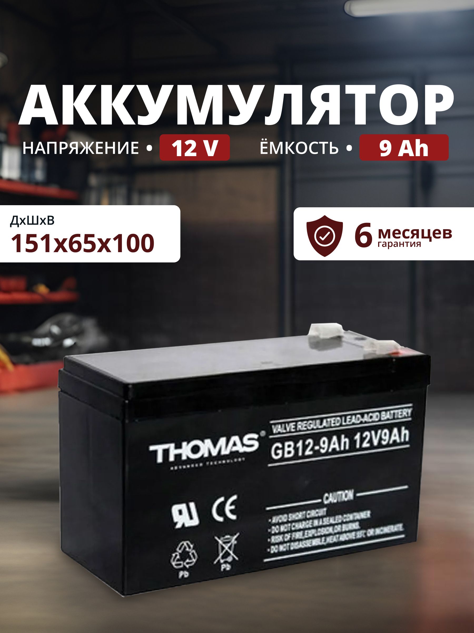 Аккумулятордляибп12v9AhThomasF2/T2акбдляохранно-пожарныхсистем,видеонаблюдения,детскихмашинок,электромобиля,эхолота,насоса,опрыскивателя
