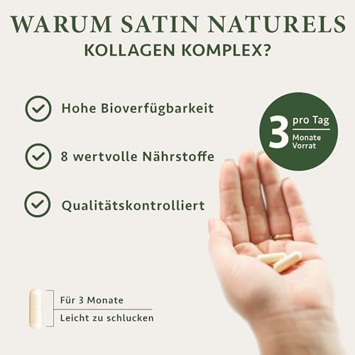 Satin Naturel Hyaluronic Collagen Complex - 270 High Dose Capsules with Biotin, Selenium, Zinc, Vitamin C & Bamboo Extract - For Skin, Hair & Nails - Made in Germany : Amazon.de: Health & Personal Care