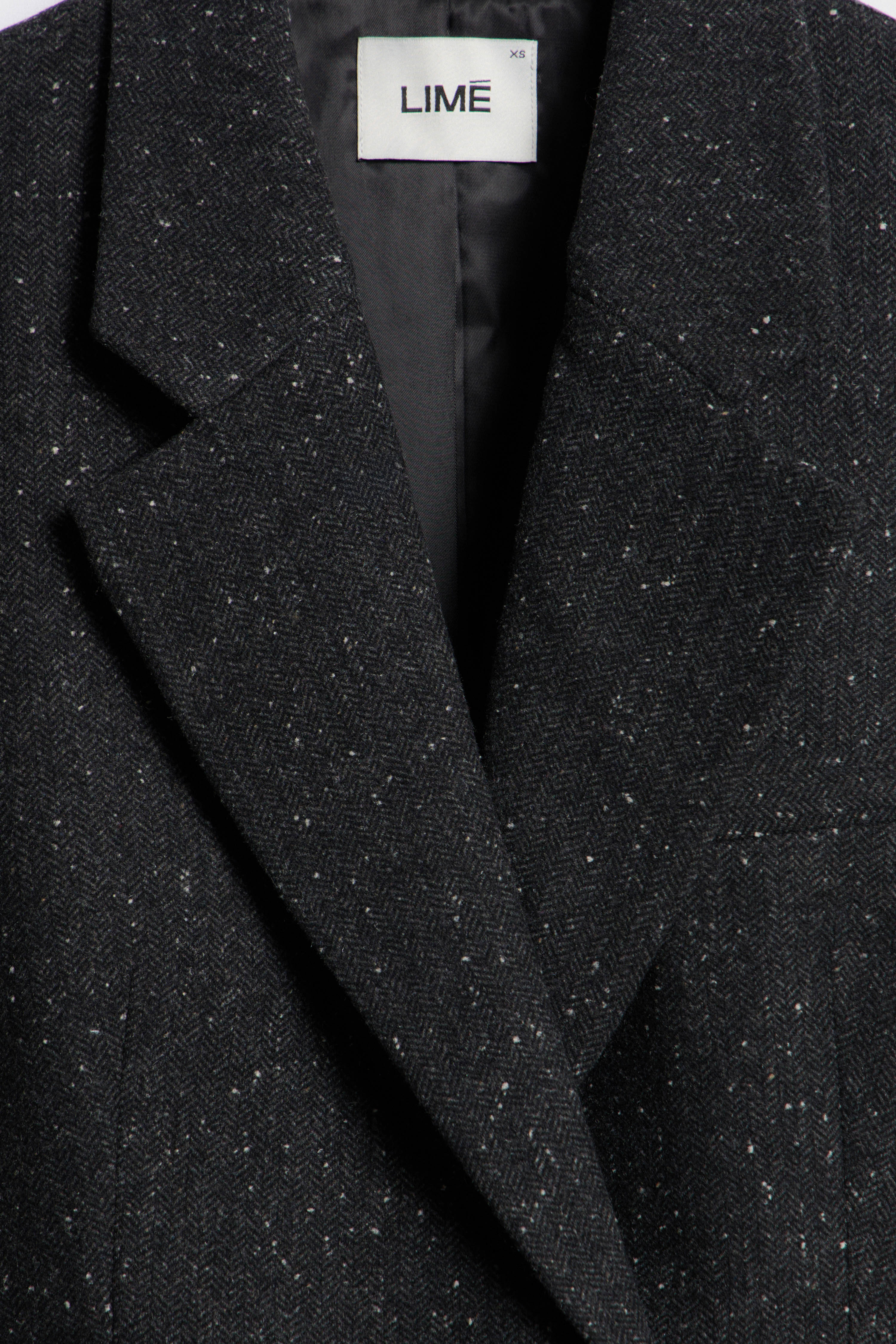 Приталенный блейзер из ткани с шерстью LIMÉ Широкоплечий блейзер приталенного кроя из теплой ткани с использованием шерсти. Двубортная модель с лацканами, подплечниками и передними карманами с клапанами. Застежка на металлическую внешнюю и внутреннюю пластиковую пуговицы. Подкладка из атласа в тон..