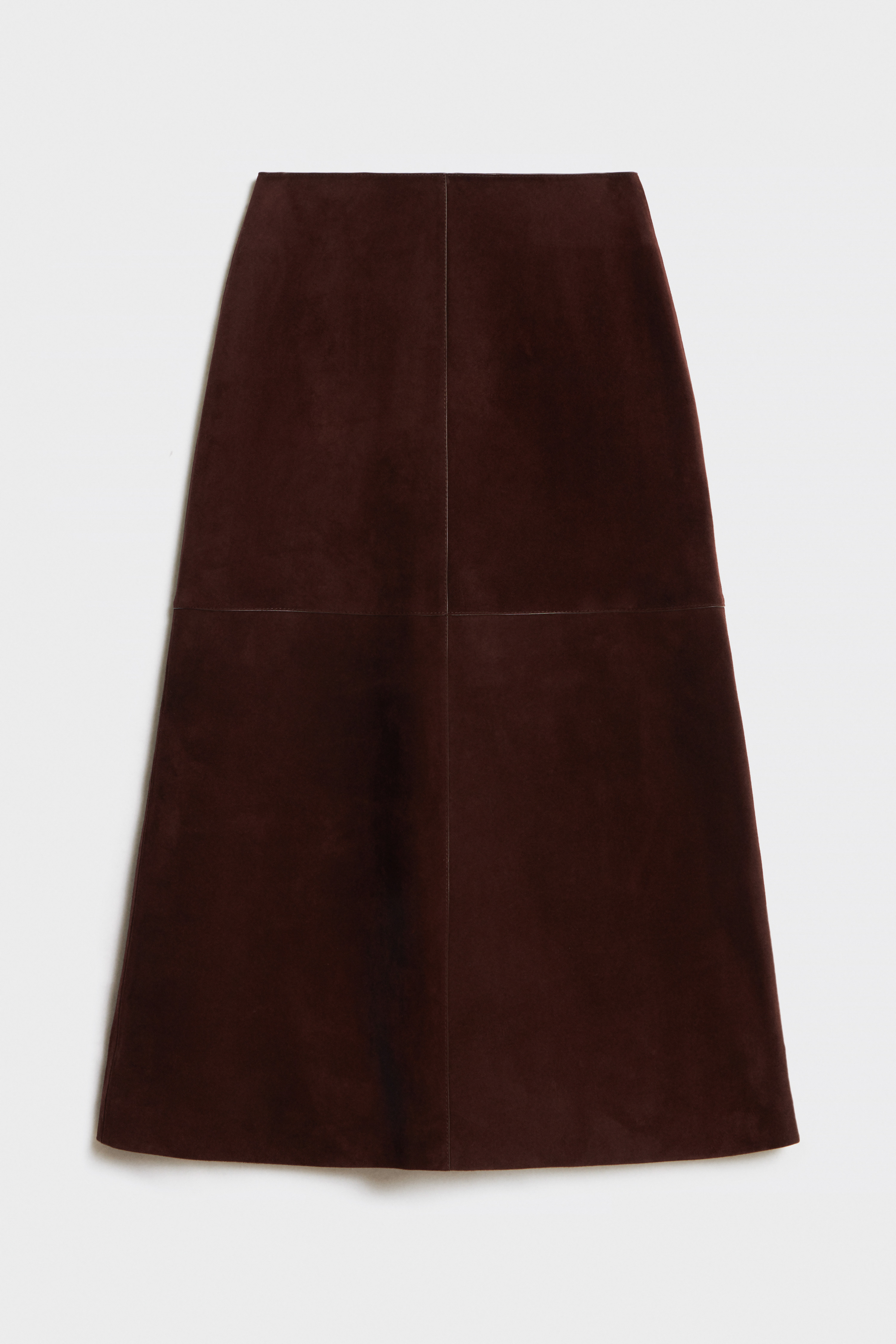 Миди-юбка из натуральной замши LIMÉ Миди-юбка из натуральной козьей замши. Подкладка выполнена из шелковистой гладкой ткани. Дополненная геометрическим узором из строчек модель застегивается молнией. Для пуллера использован металл с винтажной потертостью..