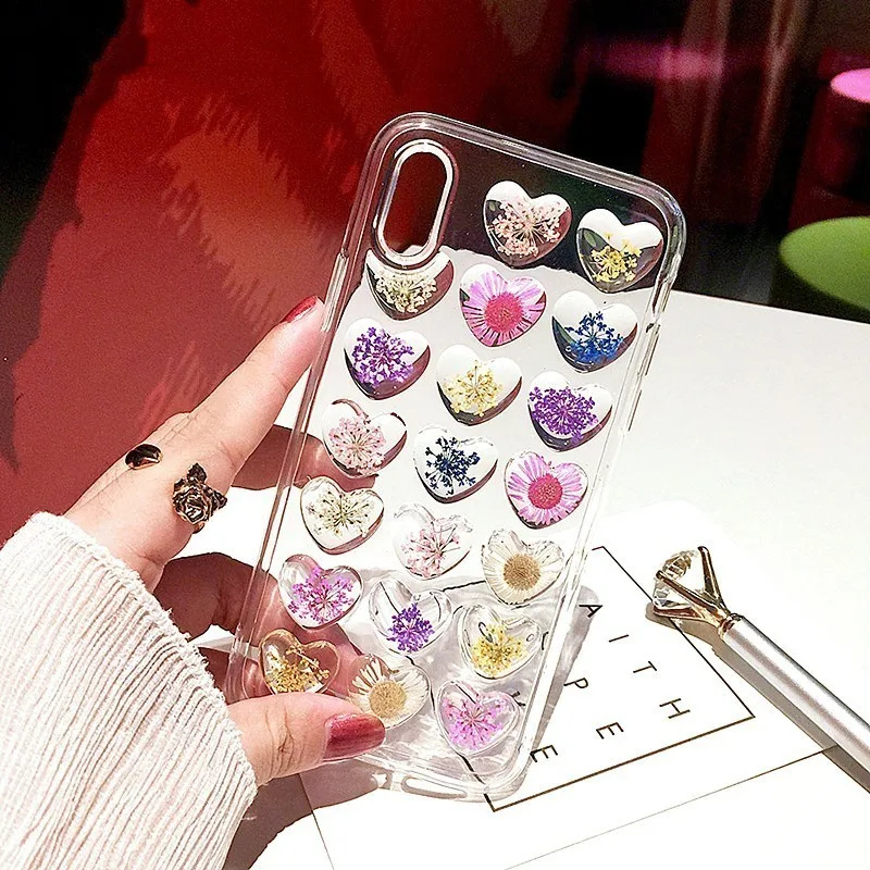 Винтажный чехол для телефона с объемными сердечками и настоящими цветами, чехол для iphone XR, мягкий силиконовый чехол для iphone 6, 7, 8 Plus, X, XS, MAX, прозрачный чехол с изображением цветов|Специальные чехлы| | АлиЭкспресс
