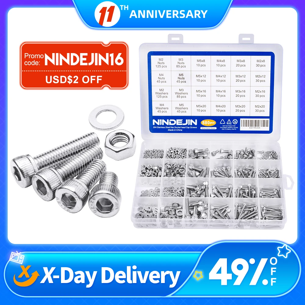 Набор винтов с шестигранной головкой NINDEJIN 880 шт. M2 M3 M4 M5 из нержавеющей стали с шестигранной плоской круглой головкой набор винтов, Наслаждайся ✓Бесплатная доставка по всему миру! ✓Предложение ограничено по времени! ✓Удобный возврат! Наслаждайся ✓Бесплатная доставка по всему миру! ✓Предложение ограничено по времени! ✓Удобный возврат!