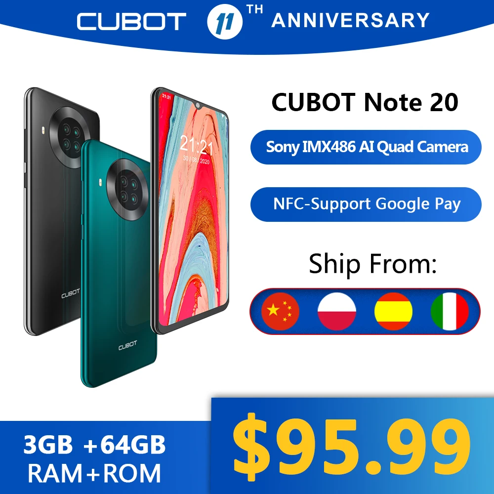 Cubot Note 20 задний Quad Camera смартфон Четыре камера NFC телефон 3 Гб + 64ГБ 6,5 дюйма 4200 мАч Большая Батарея новая Google Android 10 система две sim карты мобильные телефоны 4G LTE celular OTG глобальная версия|Смартфоны и мобильные телефоны| | АлиЭкспресс