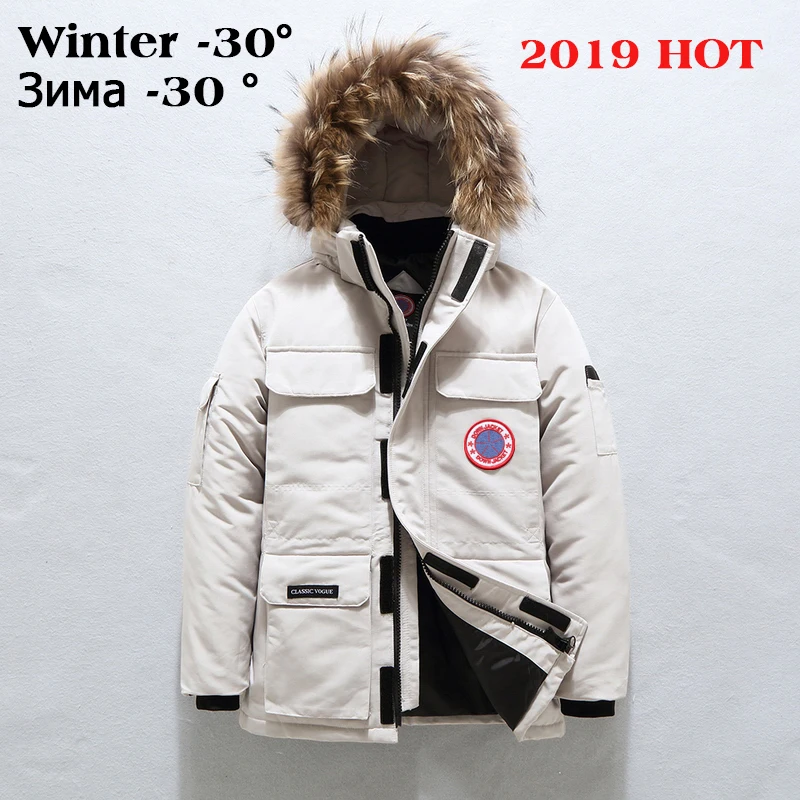 Мужская куртка пуховик на утином пуху, теплая парка с большим меховым воротником, водонепроницаемая, ветрозащитная, высокое качество, 40 градусов, 2019|Пуховики| | АлиЭкспресс