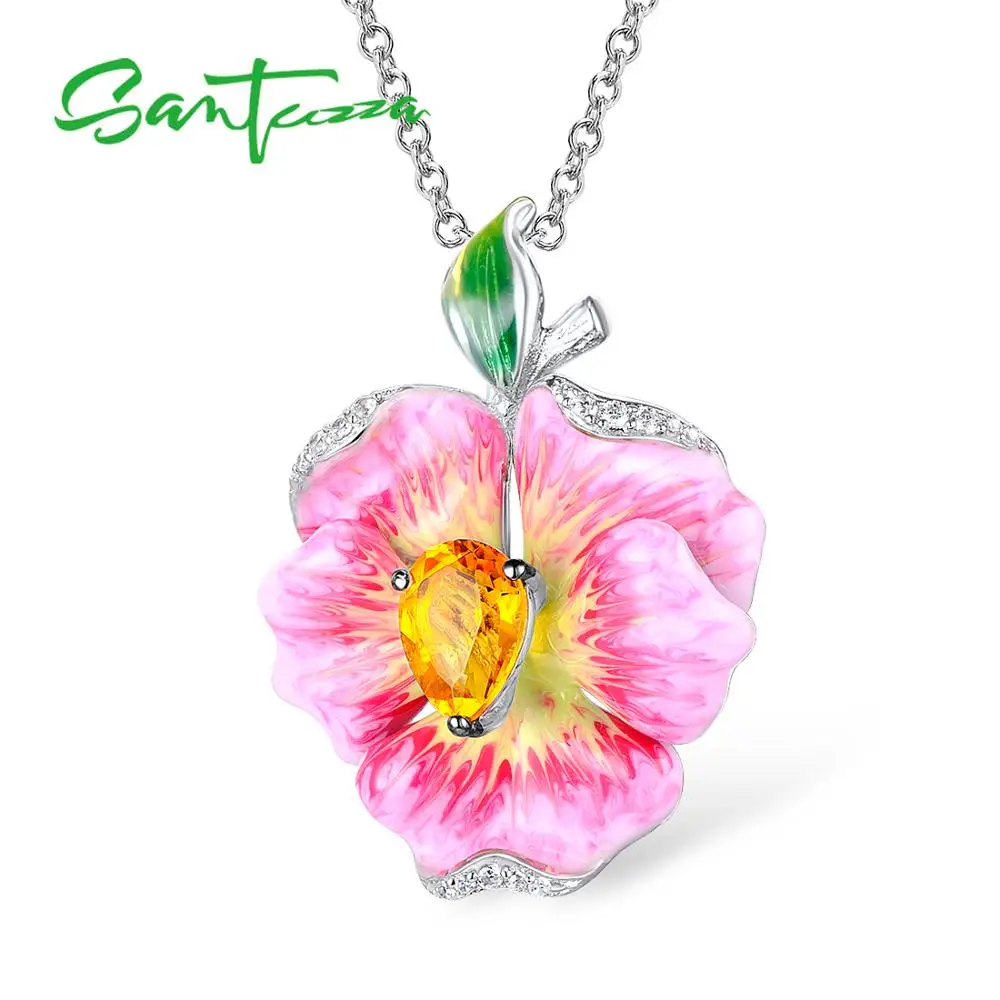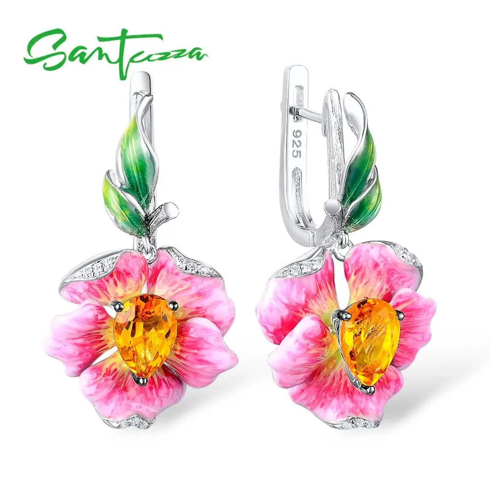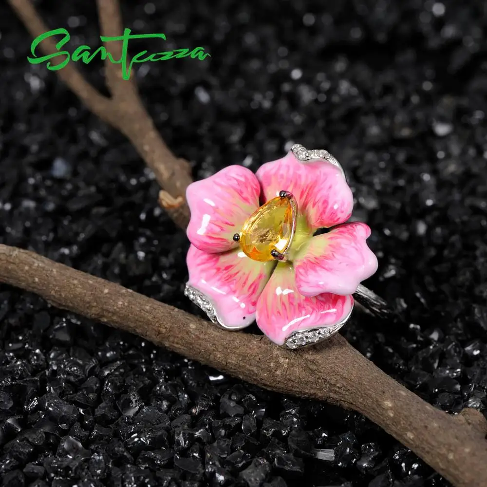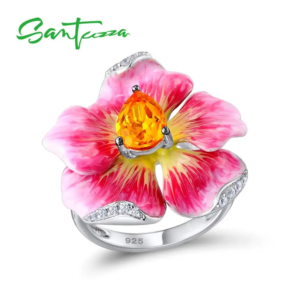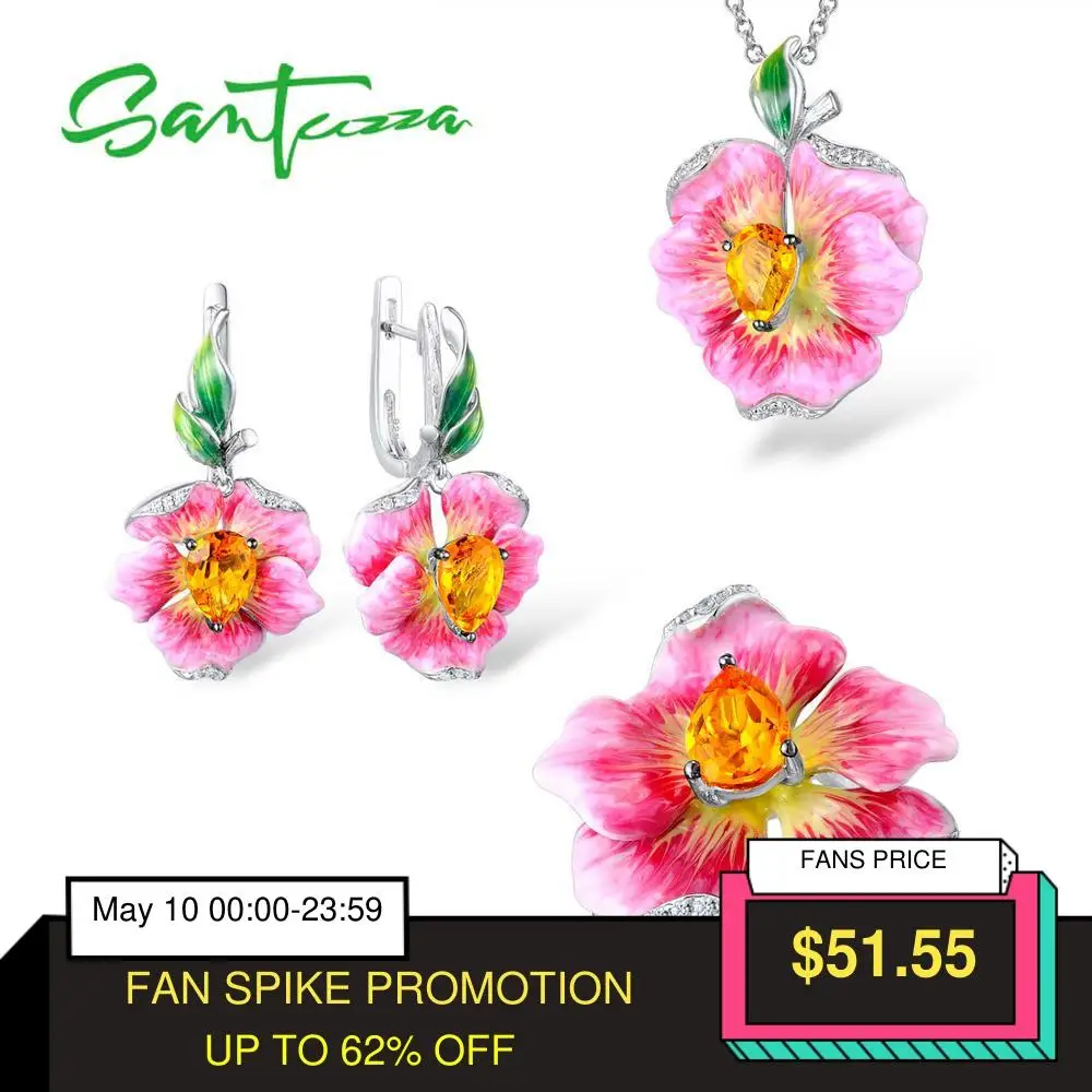 Женский ювелирный набор SANTUZZA, ювелирный набор из чистого серебра 925 пробы, серьги с цветком, кольцо с подвеской, изысканное ювелирное изделие, ручная работа, эмаль|Ювелирные наборы| | АлиЭкспресс
