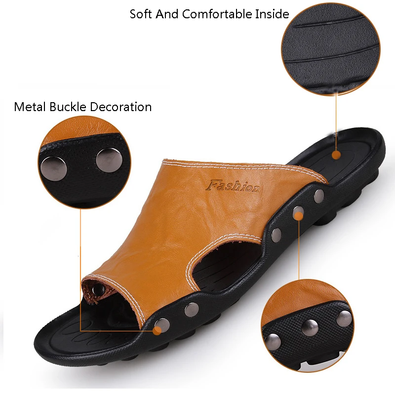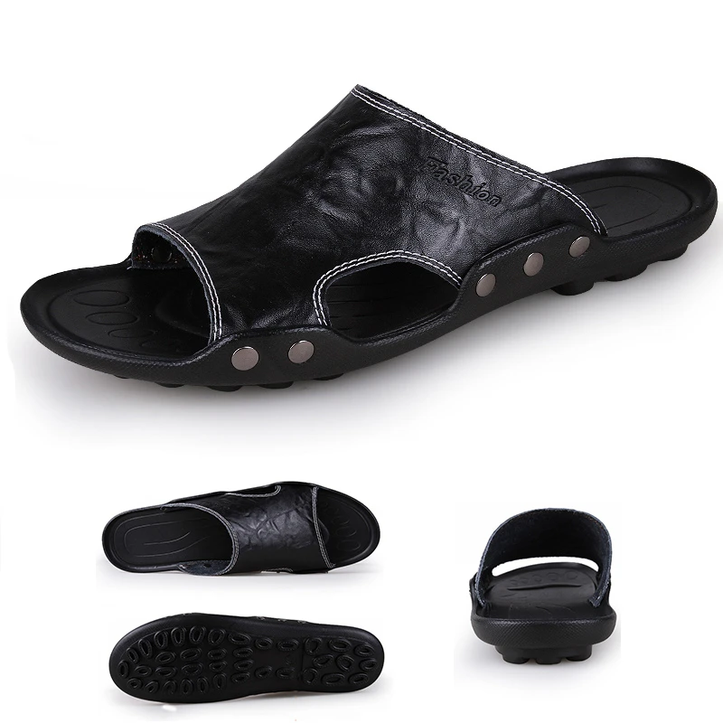 Мужские сандалии из натуральной кожи, повседневные пляжные шлепанцы на нескользящей подошве, размеры 39 S, лето 2019|Тапочки| | АлиЭкспресс