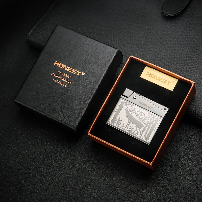 Новинка, надувная газовая зажигалка Honest с боковым кремнем, зажигание, открытое огонь, индивидуальная ветрозащитная ультратонкая металлическая сигарета зажигалки для трубки
