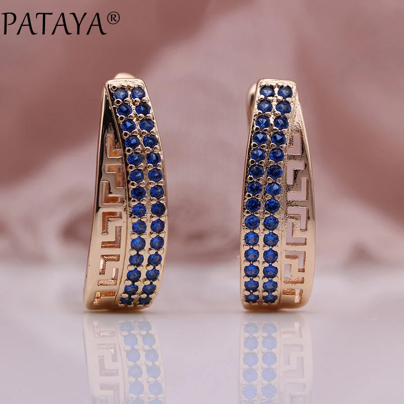 Женские серьги подвески PATAYA, серьги из розового золота с синим натуральным цирконием, нестандартные разноцветные|Серьги-подвески| | АлиЭкспресс