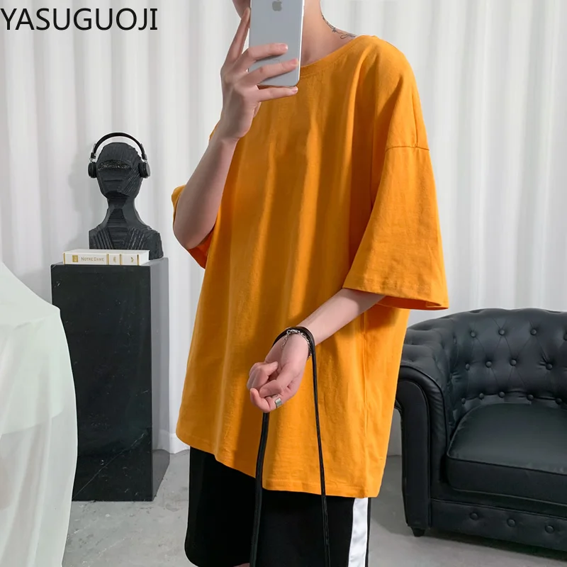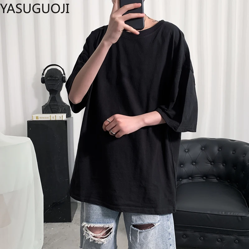 YASUGUOJI простая футболка оверсайз для мужчин бодибилдинг и фитнес свободная повседневная одежда для образа жизни Футболка мужская уличная одежда хип хоп топы|Футболки| | АлиЭкспресс