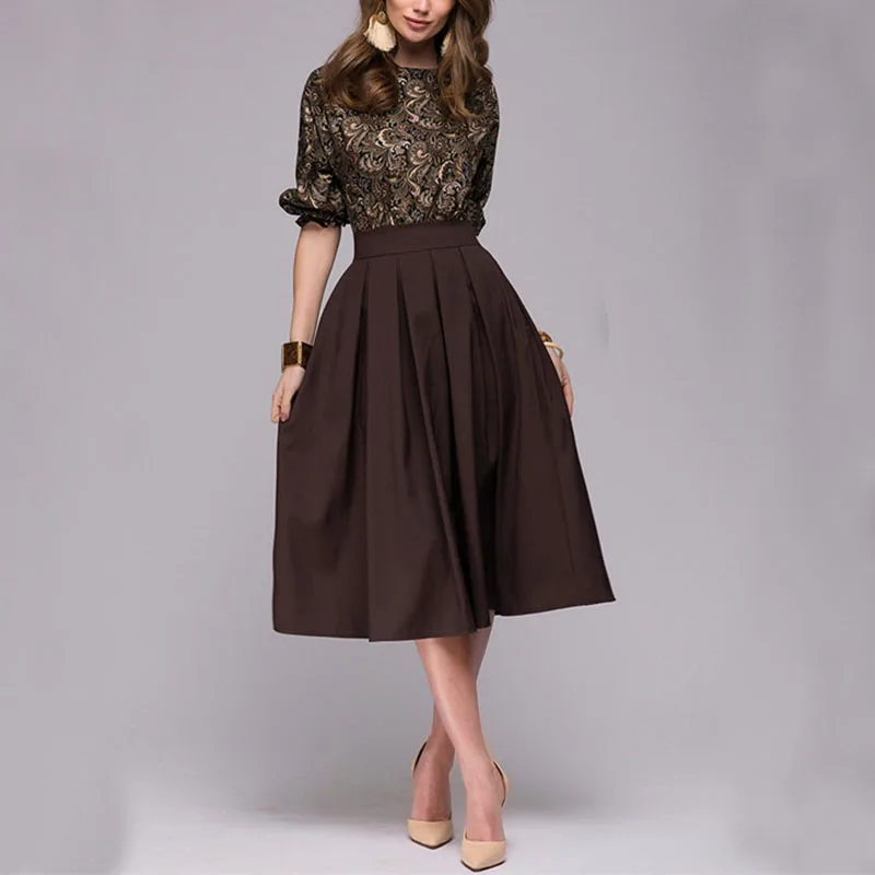 Женская винтажная юбка пачка А силуэта, с цветочным принтом, 50 s, в стиле «рокабилли», ретро стиль, миди юбка с высокой талией, лето 2019|Юбки| | АлиЭкспресс