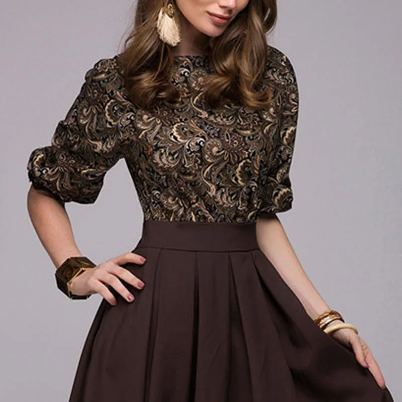 Женское офисное платье до колен, элегантное платье с круглым вырезом, рукавом 2019 и оборками, весна-осень 3/4, Наслаждайся ✓Бесплатная доставка по всему миру! ✓Предложение ограничено по времени! ✓Удобный возврат! Наслаждайся ✓Бесплатная доставка по всему миру! ✓Предложение ограничено по времени! ✓Удобный возврат!