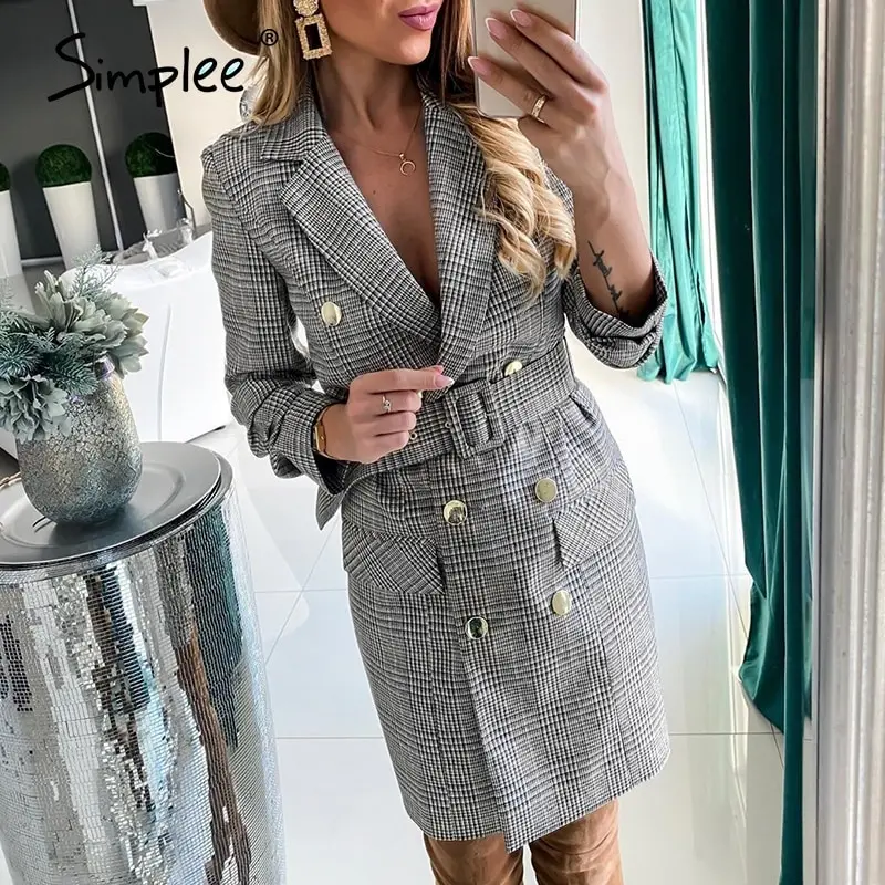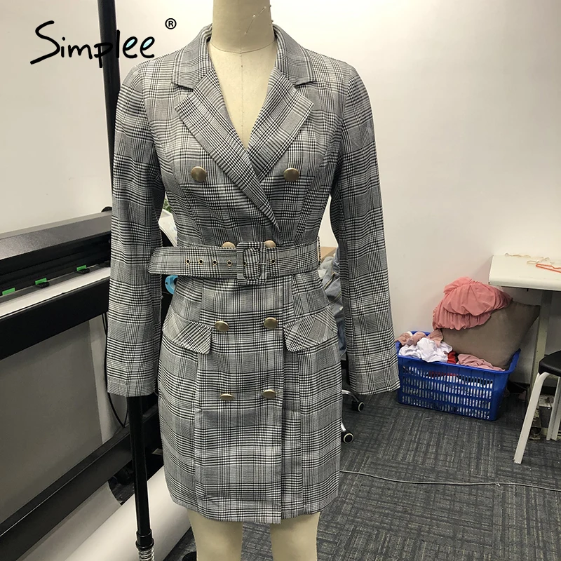 Женское двубортное платье Simplee, винтажное платье в клетку с поясом, элегантное офисное платье-блейзер с длинным рукавом, Осеннее мини-платье, Наслаждайся ✓Бесплатная доставка по всему миру! ✓Предложение ограничено по времени! ✓Удобный возврат! Наслаждайся ✓Бесплатная доставка по всему миру! ✓Предложение ограничено по времени! ✓Удобный возврат!