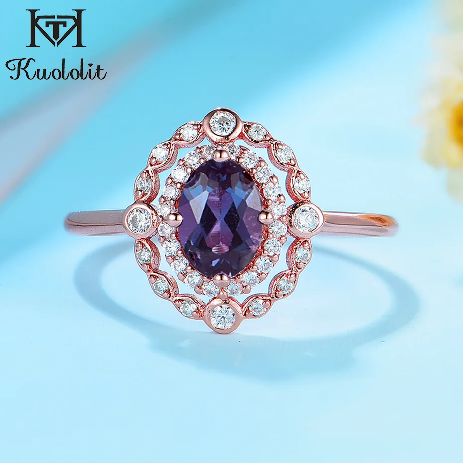 Женское серебряное кольцо kuoluit Lab, роскошное кольцо с Александритом из твердого 925 пробы 585 пробы, ювелирные изделия для помолвки, подарки, новинка 2021|Кольца| | АлиЭкспресс