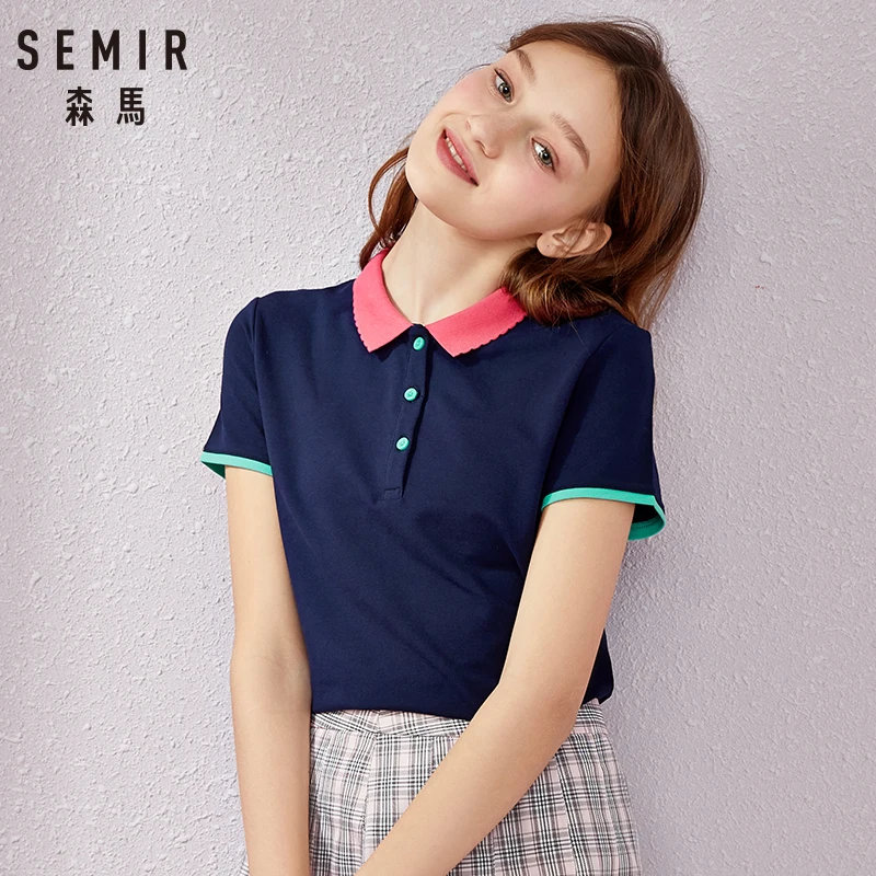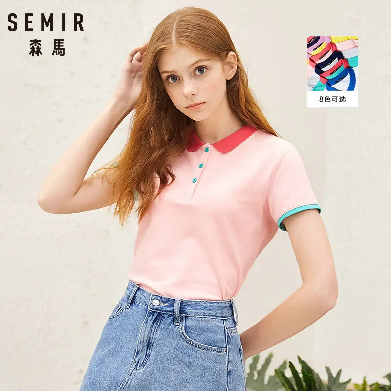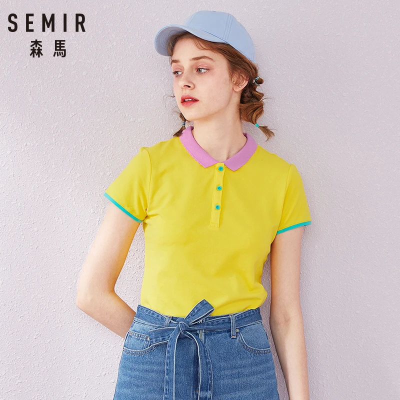 SEMIR Новинка 2020 летняя брендовая Однотонная рубашка поло женская тонкая рубашка с коротким рукавом camisa рубашка поло женская Повседневная рубашка одежда|Футболки-поло| | АлиЭкспресс