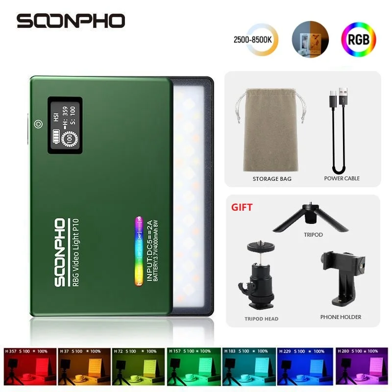 Светодиодный мини светильник SOONPHO P10 RGB 2500K 8500K, металлический полноцветный светильник для видеосъемки, встроенный аккумулятор|Фотографическое освещение| | АлиЭкспресс