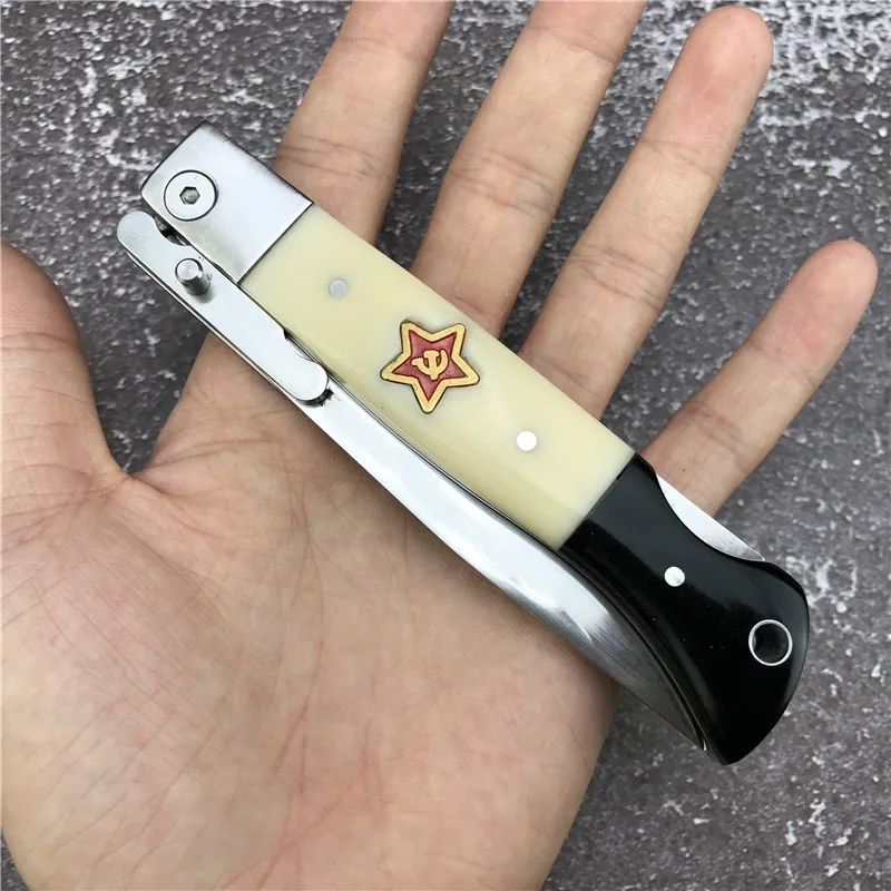Русский Finka NKVD KGB wit EDC ручной складной карманный нож черная и белая ручка из смолы 440C Лезвие зеркальная отделка для кемпинга на открытом воздухе|Ножи| | АлиЭкспресс