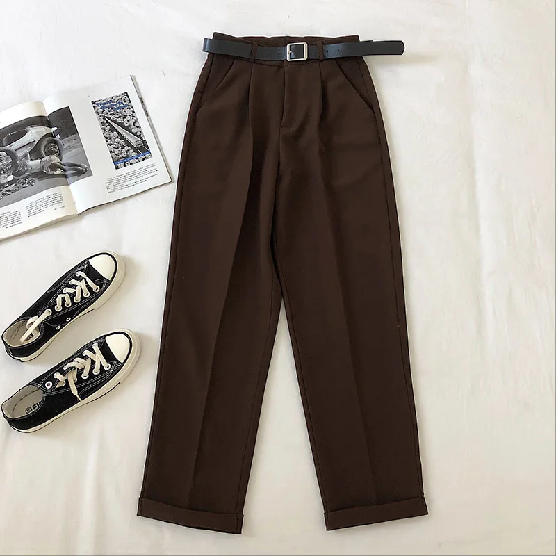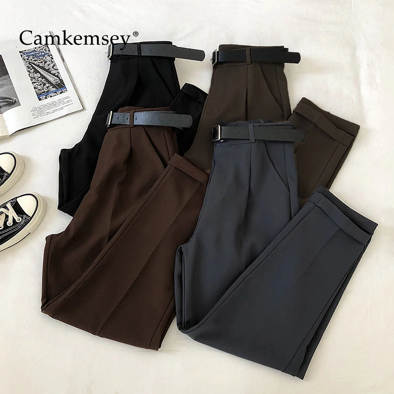 Женский офисный костюм camkemley, повседневные однотонные шаровары до щиколотки с высокой талией в Корейском стиле, 2020|Брюки | | АлиЭкспресс