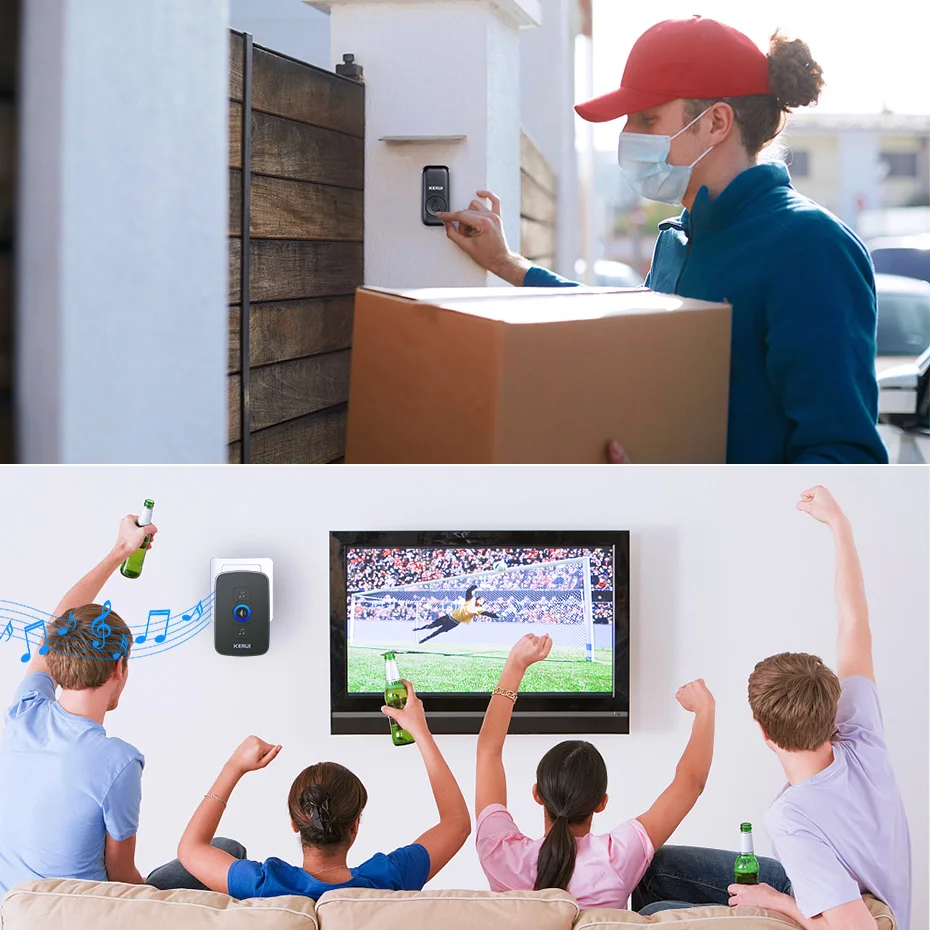 KERUI M525, timbre inalámbrico de bienvenida para la seguridad del hogar, timbre inteligente, alarma, luz LED, 32 canciones con botón táctil resistente al agua| | - AliExpress