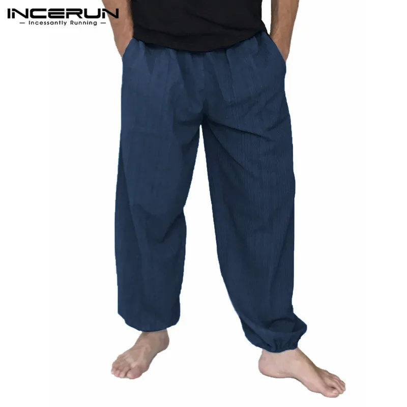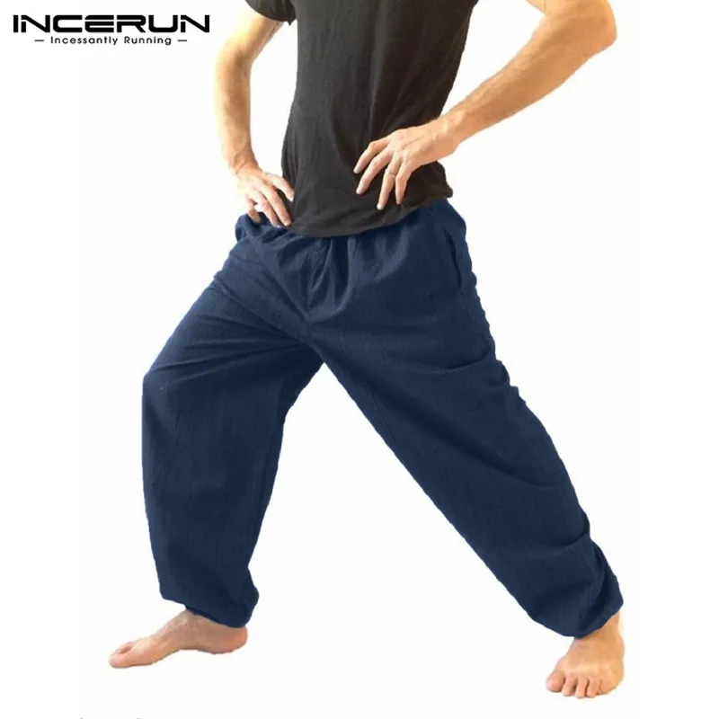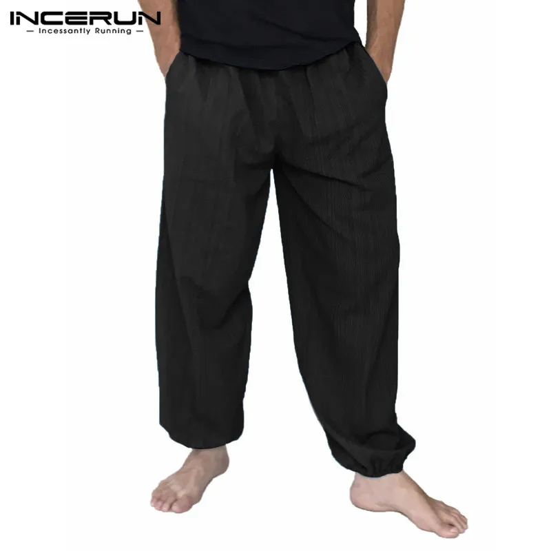 Мужские Широкие Брюки с карманами, повседневные мешковатые брюки шаровары на шнурке для бега, мода 2020, INCERUN|Повседневные брюки| | АлиЭкспресс