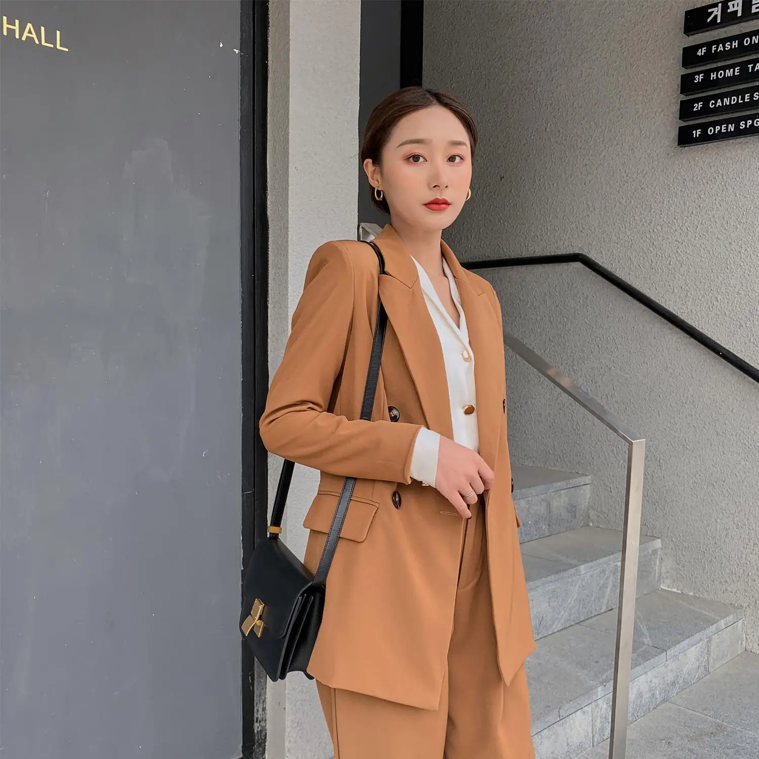 Новинка 2020, элегантный офисный костюм для работы, брючный костюм, OL, комплект из 2 предметов, однотонный пиджак и брюки, костюм для женщин, Femme