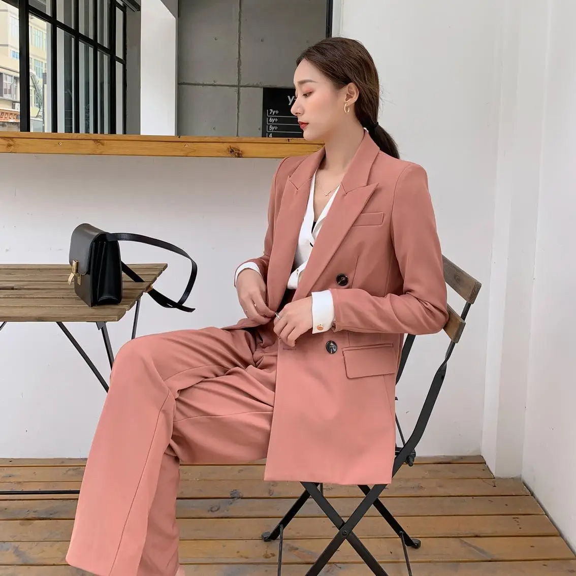 OL, 2020, Осенние рабочие брюки, костюм для женщин, на одной пуговице, Офисная Леди, пиджак + брюки на молнии, синий, розовый, комплект из 2 предмет...