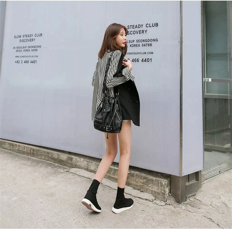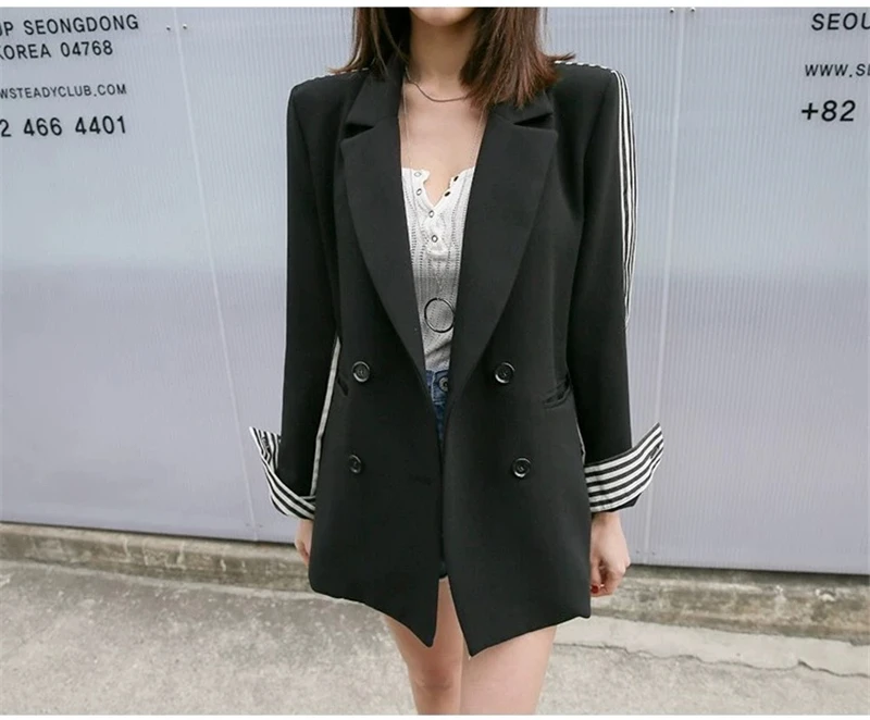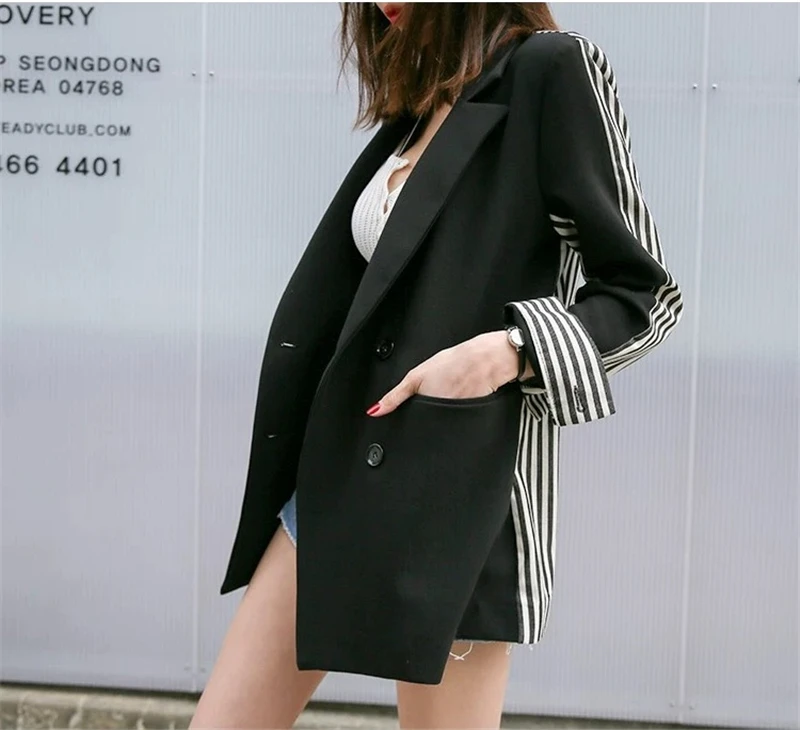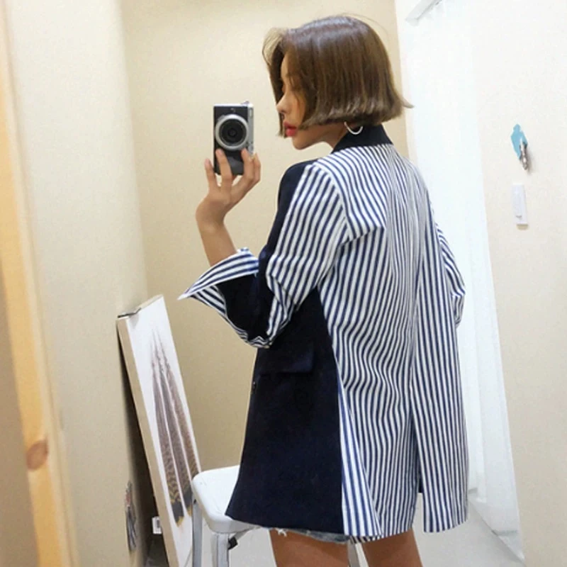 Модный Полосатый лоскутный блейзер для женщин, осенне-весеннее пальто с отложным воротником и длинными рукавами, Офисная Женская длинная к...