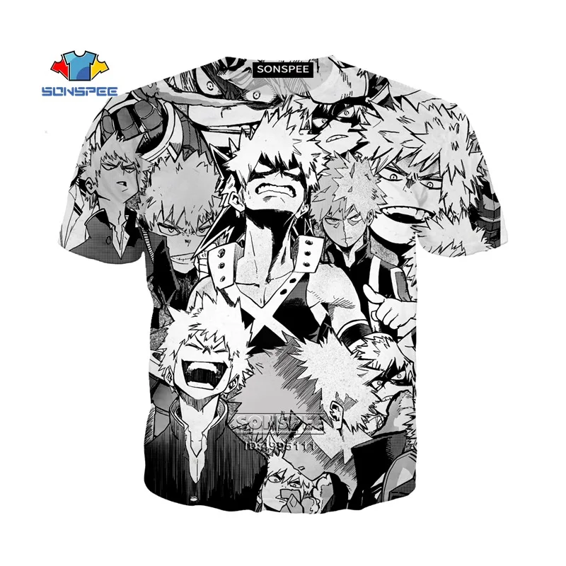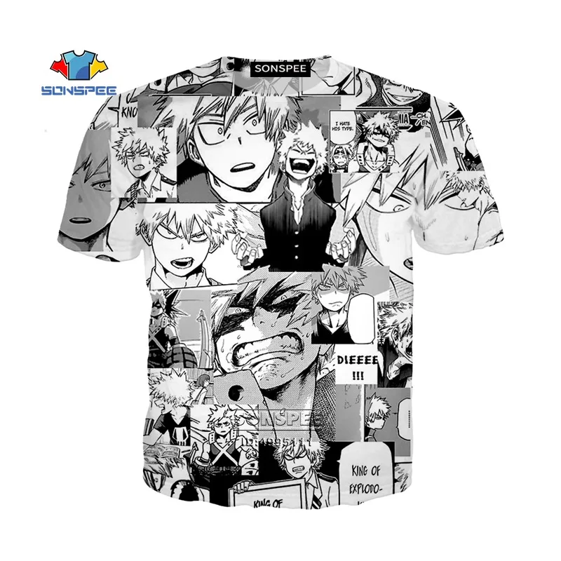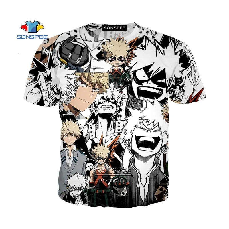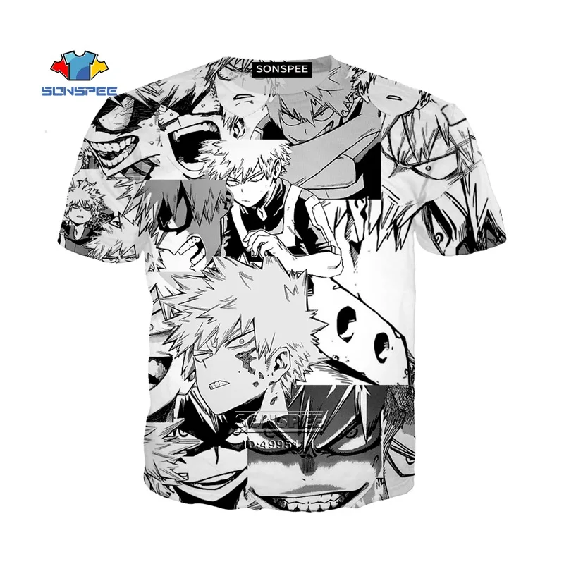 Забавные комиксы аниме My Hero academic Bakugou Katsuki, милые лица, 3D принт, Мужская футболка, Повседневная футболка, Harajuku, летняя футболка, топы