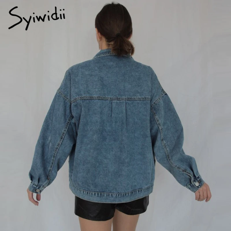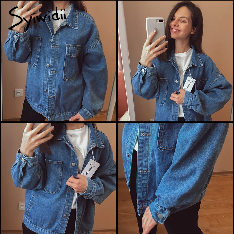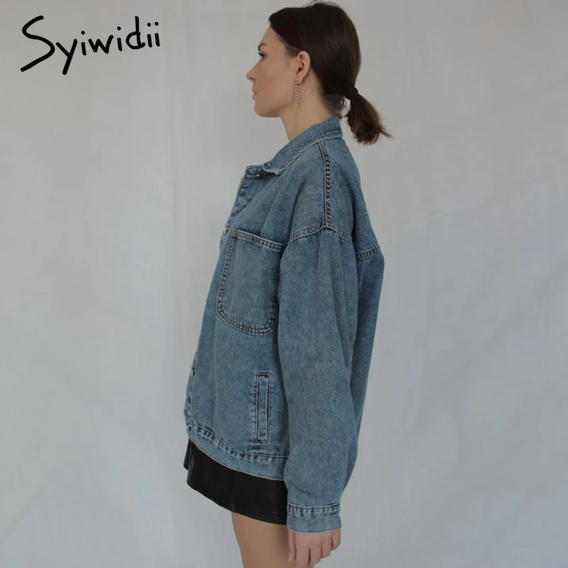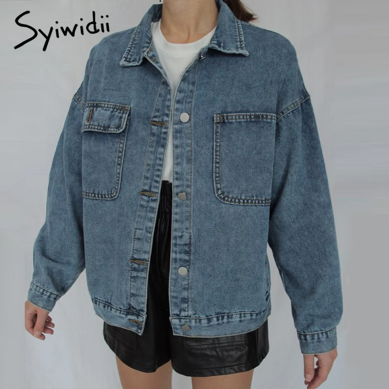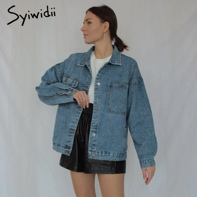 Женская джинсовая куртка syiwidii, джинсовая куртка оверсайз в Корейском стиле, повседневная однотонная куртка на осень зиму 2020|Куртки| | АлиЭкспресс
