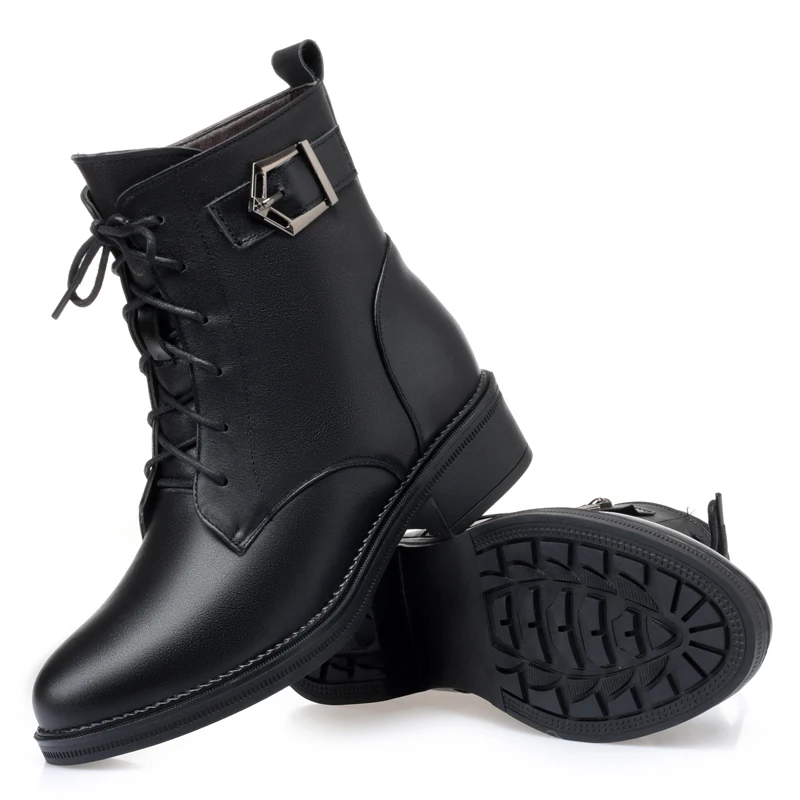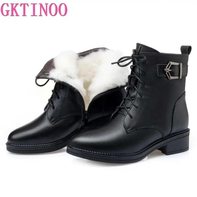 Женские ботильоны из натуральной кожи GKTINOO, черные теплые шерстяные ботинки на толстом высоком каблуке, зима 2020|Зимние сапоги| | АлиЭкспресс