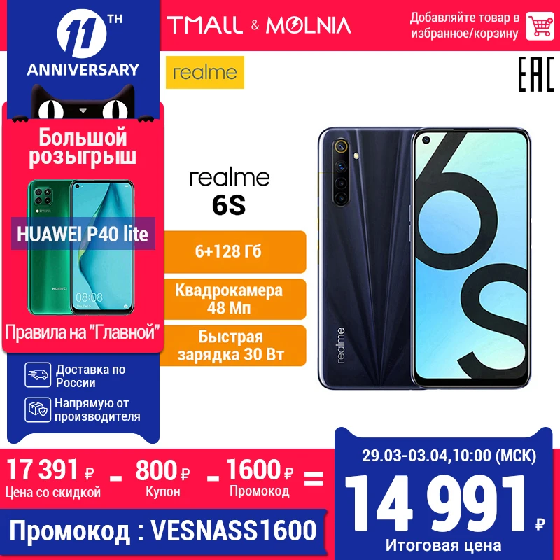 Смартфон realme 6 4+128 ГБ RU [Итоговая цена 17 491 руб. ]|Смартфоны и мобильные телефоны| | АлиЭкспресс
