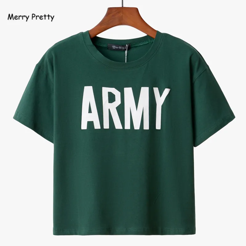 US $9.45 14% OFF|Merry Pretty Women Tshirt 2018 Summer Style Army Green T Shirts Harajuku Loose Casual Tops Letter Print Female Cotton T shirt-in T-Shirts from Women's Clothing on Aliexpress.com | Alibaba Group