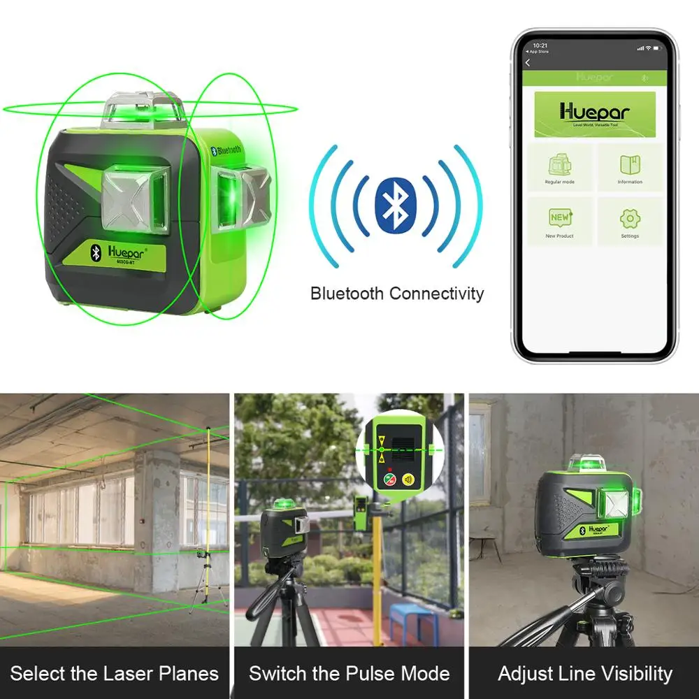 Huepar зеленый лазерный луч 3D лазерный уровень с Bluetooth Функция саморегулирующаяся поперечная линия с зарядкой от USB для выпрямления сухих и литий-ионный аккумулятор Батарея & наборы штативов, Наслаждайся ✓Бесплатная доставка по всему миру! ✓Предложение ограничено по времени! ✓Удобный возврат! Наслаждайся ✓Бесплатная доставка по всему миру! ✓Предложение ограничено по времени! ✓Удобный возврат!
