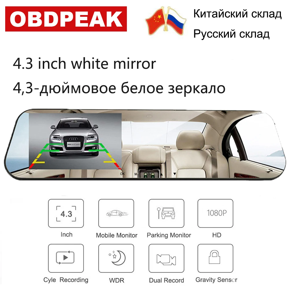 1211.04 руб. 51% СКИДКА|4,3 дюймов Автомобильный видеорегистратор Камера Белое Зеркало FHD 1080 P двойной объектив с камерой заднего вида видеорегистратор авто регистратор цифровые видеорегистраторы-in Автомобильное видео зеркало from Автомобили и мотоциклы on Aliexpress.com | Alibaba Group