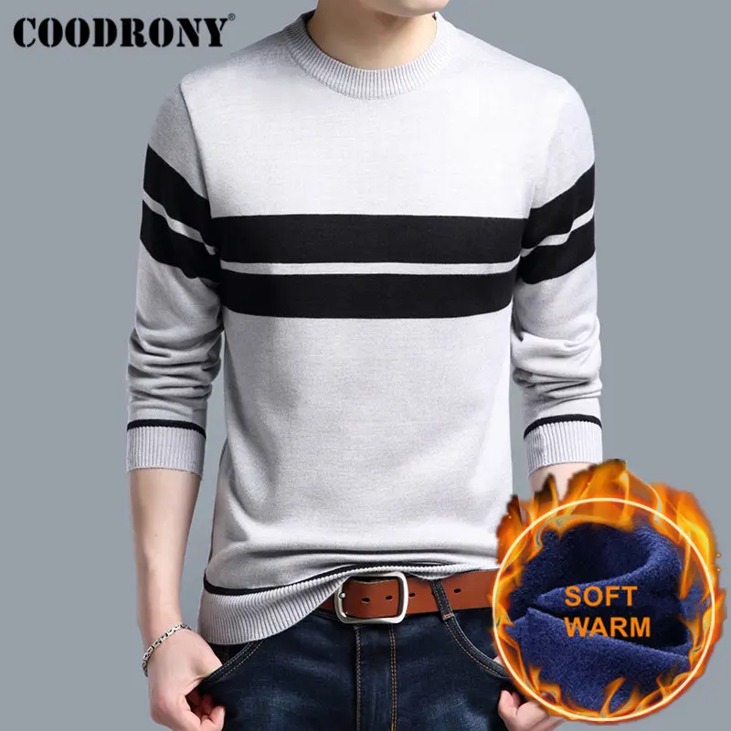 Мужской шерстяной свитер COODRONY, толстый теплый Повседневный пуловер с хлопковой подкладкой и круглым вырезом, модель H018 на зиму, 2019|Джемперы | | АлиЭкспресс
