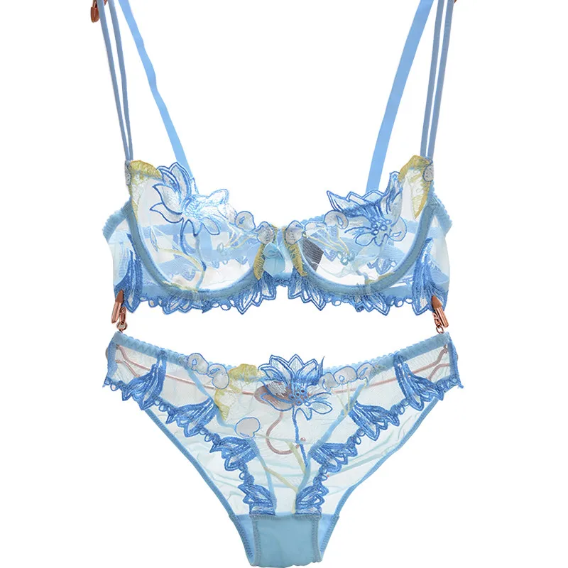 Винтажная Мода Толстый Бюстгальтер И Трусики Набор Кружева Сексуальное Женское Белье Хлопок Бюстгальтер Пуш ап 3/4 Чашки Синий Бюстгальтер Вышивать|bra and panty|bra and panty setcotton bra set | АлиЭкспресс