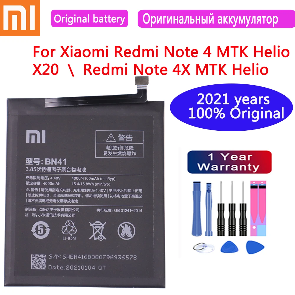 2020 100% оригинальная запасная батарея BN41 4100 мАч для Xiaomi Redmi Note 4 MTK Helio X20 Redmi Note 4X MTK Helio X20 Bateria|Аккумуляторы для мобильных телефонов| | АлиЭкспресс