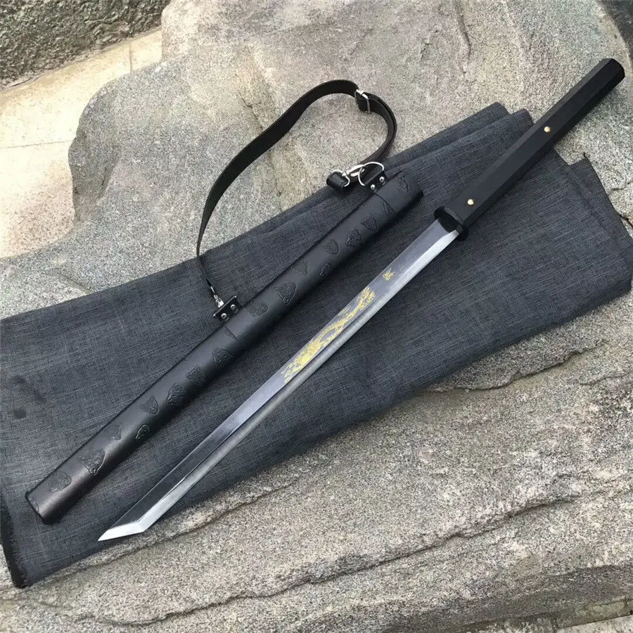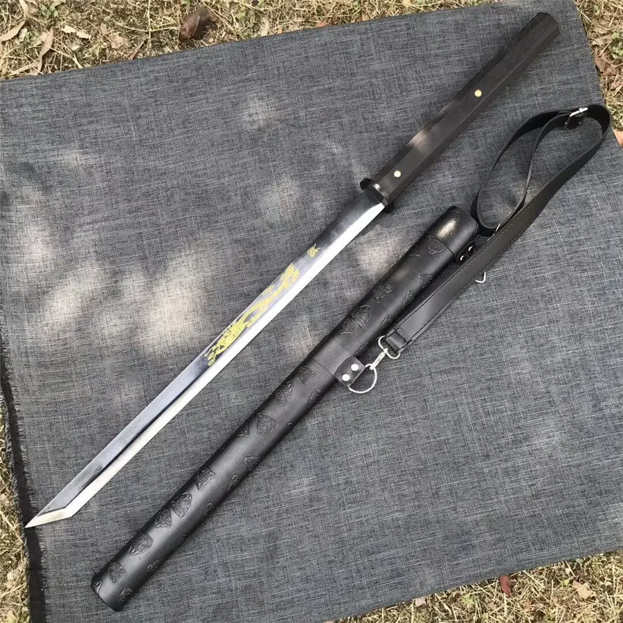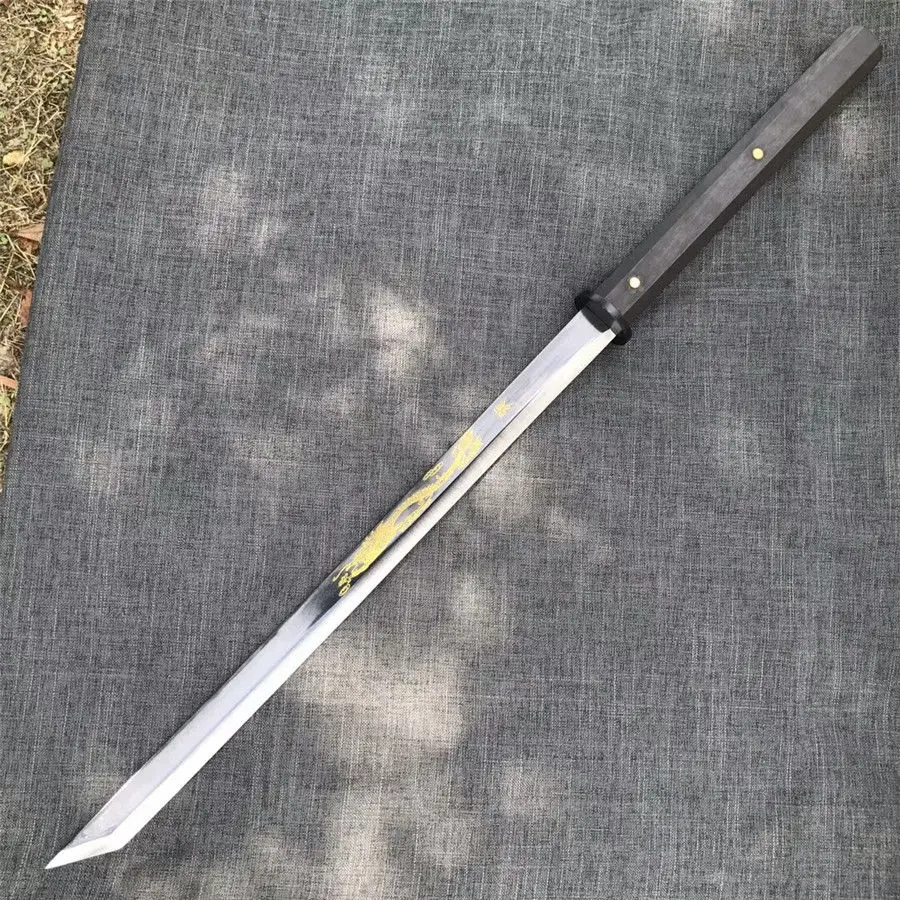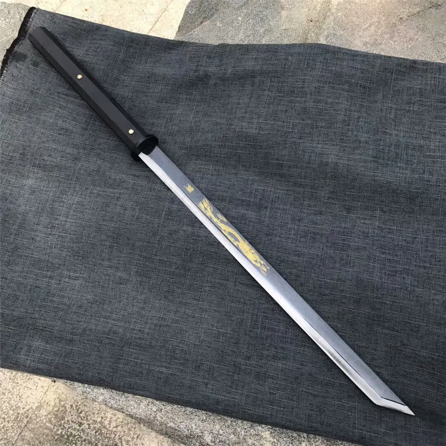 Китайский фехтовальщик, боевой Dao меч катана, черный Высокоуглеродистый стальной драконовый клинок, острый режущий бамбуковый прямой нож для улицы|Мечи| | АлиЭкспресс