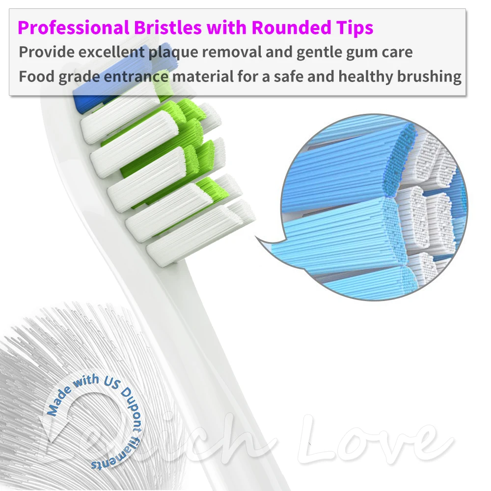 8 шт. насадки для зубных щеток с 2 шт. многоразовые Защитные чехлы для Philips Sonicare насадки для щеток подходят для 2 серии 3 серии Health