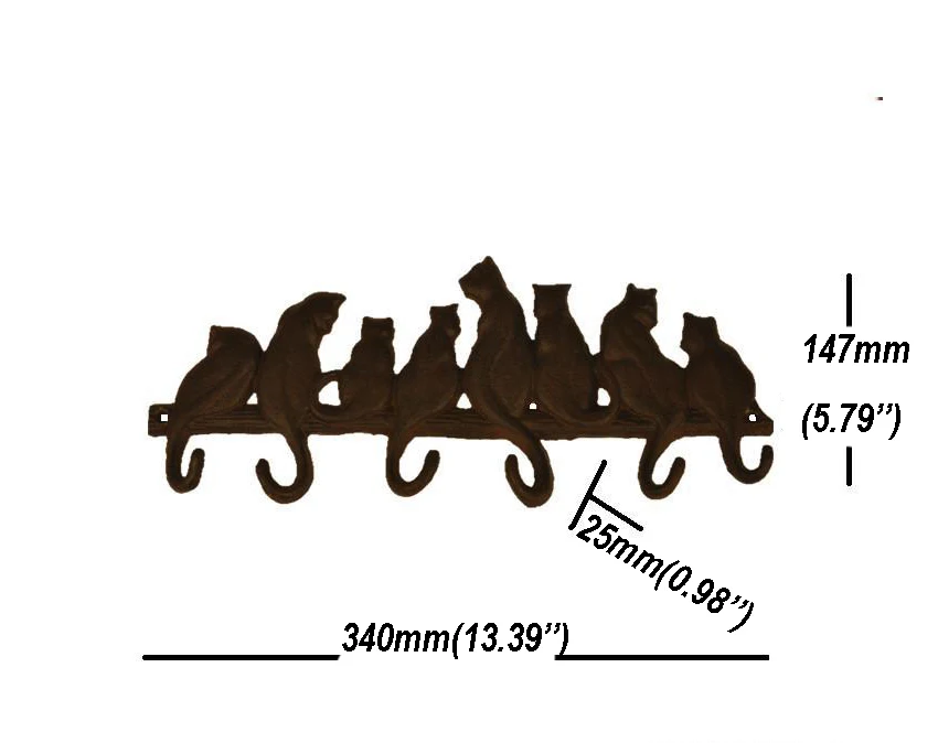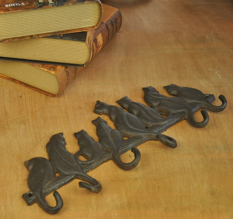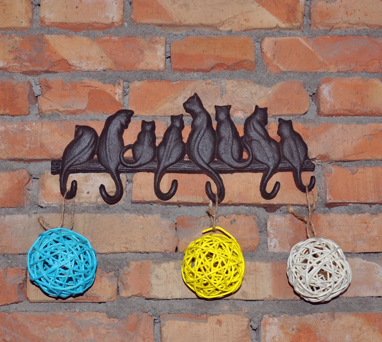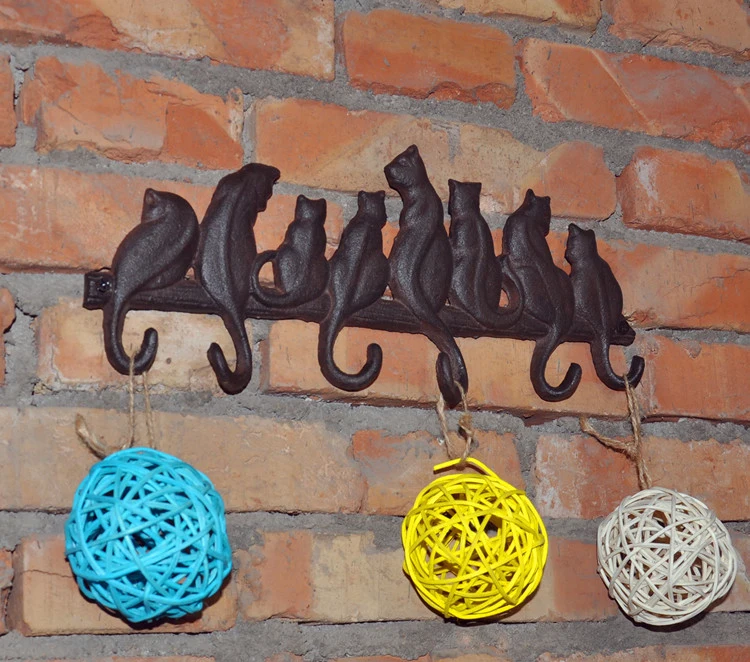 Стена в деревенском стиле с восьми кошками, крючок с 6 крючками, чугунный настенный крючок, идеально подходит для сада, дома, гаража и инструментов, сараев
