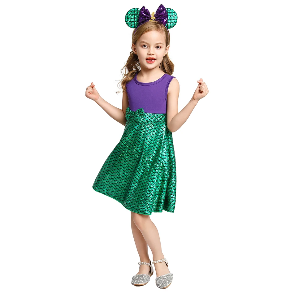 Детское платье Ариэль, платье Микки Мауса, Белоснежка, Золушка, Эльза, Анна, Белоснежка, костюм для косплея, лето