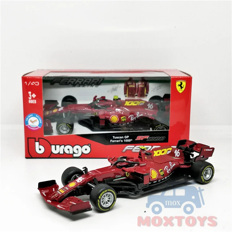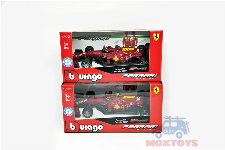 Литой гоночный Автомобиль Bburago 1:43 F1 2020 команды Ferrari's 1000th SF1000 #5 Себастьян веттел/№ 16 Чарльз помидоров