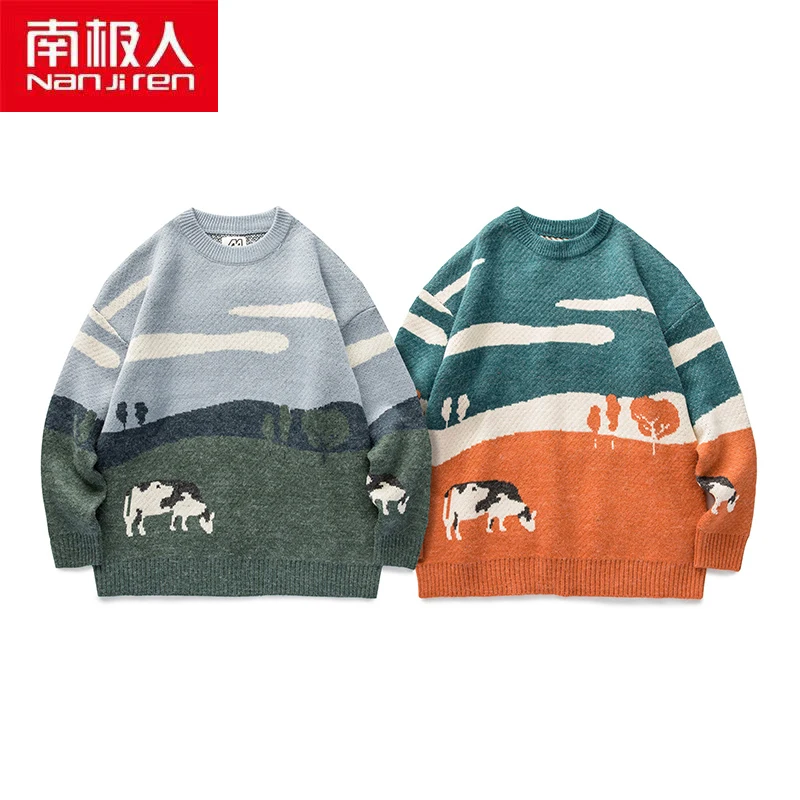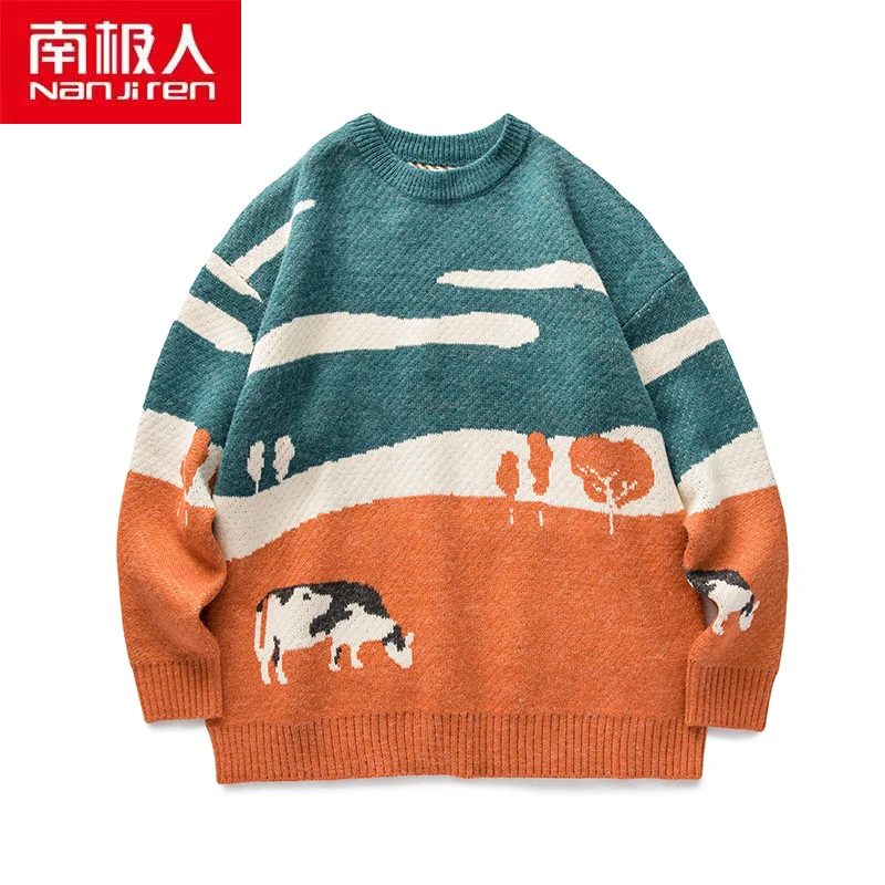 Nanjiren мужские костюмы для мужчин дышащая пуловеры Теплые ежедневно повседневная одежда с О образным вырезом, принт с животными, одежда с длинным рукавом Хлопок Тонкий мужской свитер