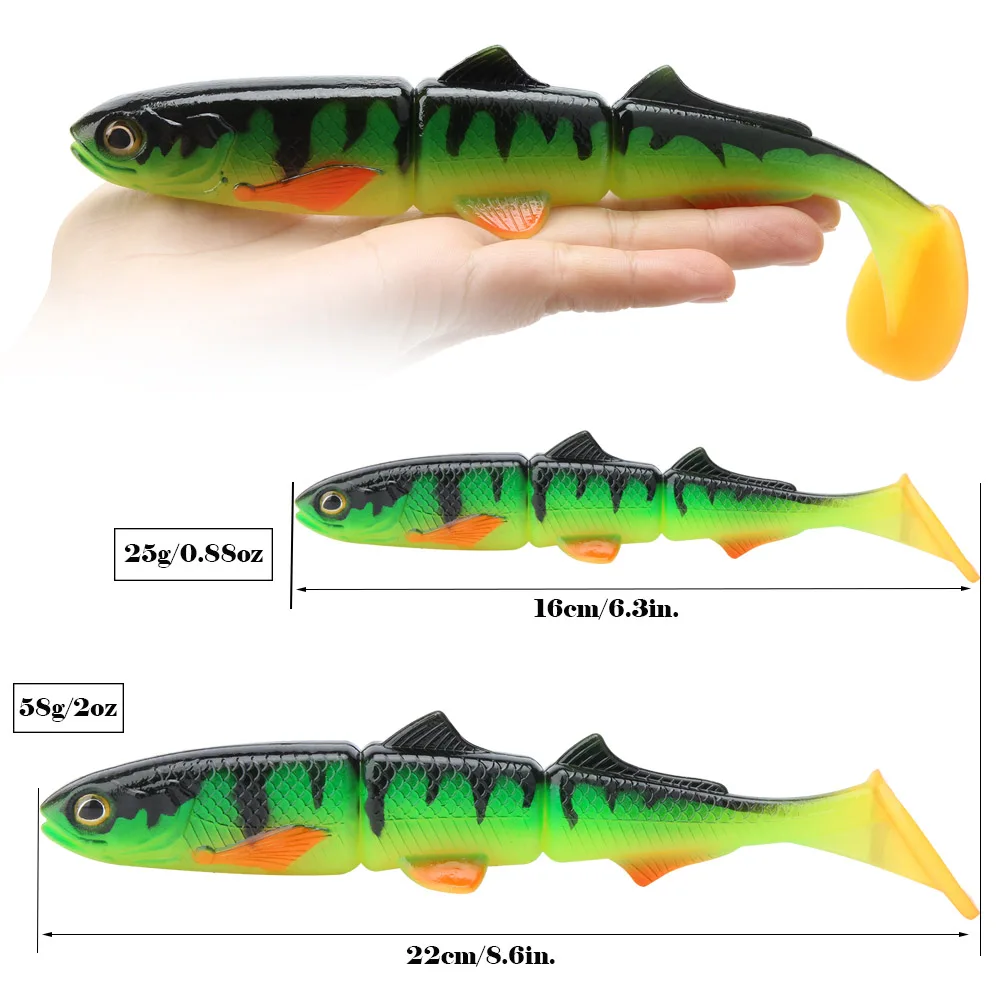 Spinpoler 3 сочлененной мягкий Пластик приманки лопатка для плавания хвост Swimbait 16 см, 22 см, щука бас маски Big T хвост мягких приманок, 1 шт.