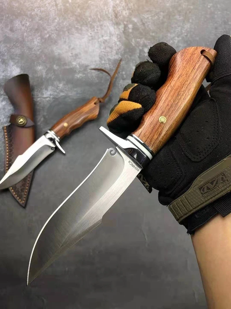 Ручной работы Ножи и карманный Ножи с кожаным чехлом лезвие катаны выживания военный Лагерь Охота Лагерь Нож Охота KNFT 08