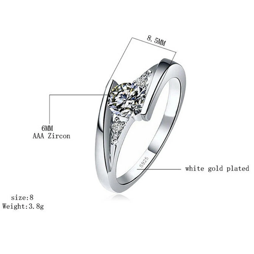Vrouwen Legering Vinger Ring Ronde Cut Engagement Ring Bruids Sieraden Geschenken Tt @ 88